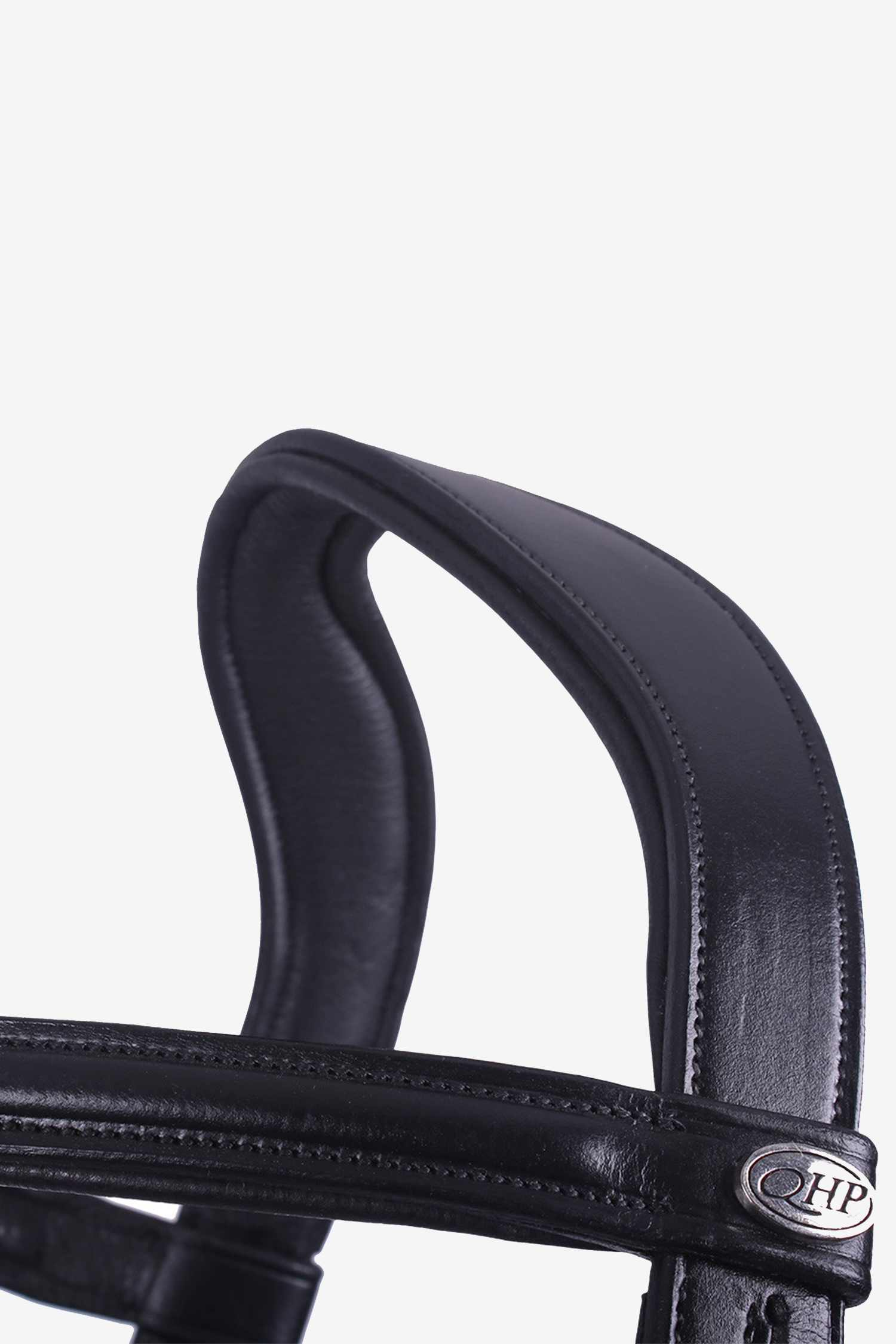 Tillverkat i mjukt kvalitetsläder med rostfria spännen och mjuk vaddering på både nosgrimma och nackstycke för att minska tryck och skav. Det anatomiskt utformade nackstycket är designat för att frigöra området runt öronkanalen och ge hästen maximal rörelsefrihet och trivsel.