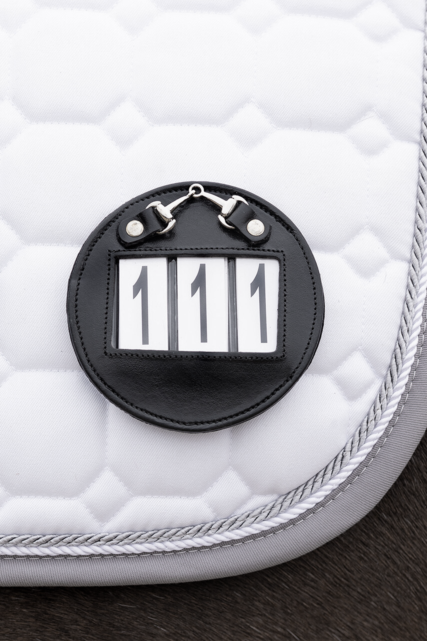 QHP Nummerlapp i läder – Sitter säkert och elegant. Den smarta baksidan har både säkerhetsnål och kardborre, vilket gör att den fäster stabilt på träns, sadel eller schabrak. Levereras med nummerkort som är enkla att byta, så du snabbt kan anpassa numret mellan starter.