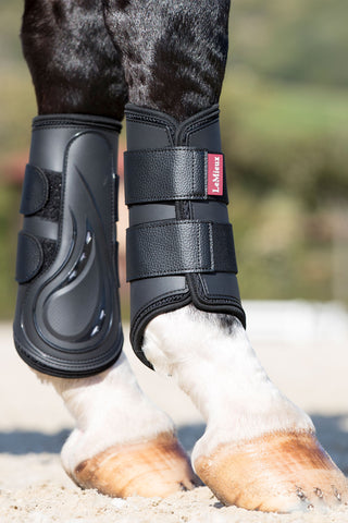 Slagsäkert yttre skal avleder stötar medan det mjuka inre neoprenfodret och kanten ger maximal komfort för hästen hela ridpasset.