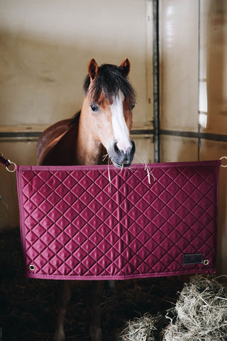 Supersnyggt boxskydd för hästens huvud uppe vid boxdörren som matchar boxgardin och boxstopp i samma serie från Kentucky.