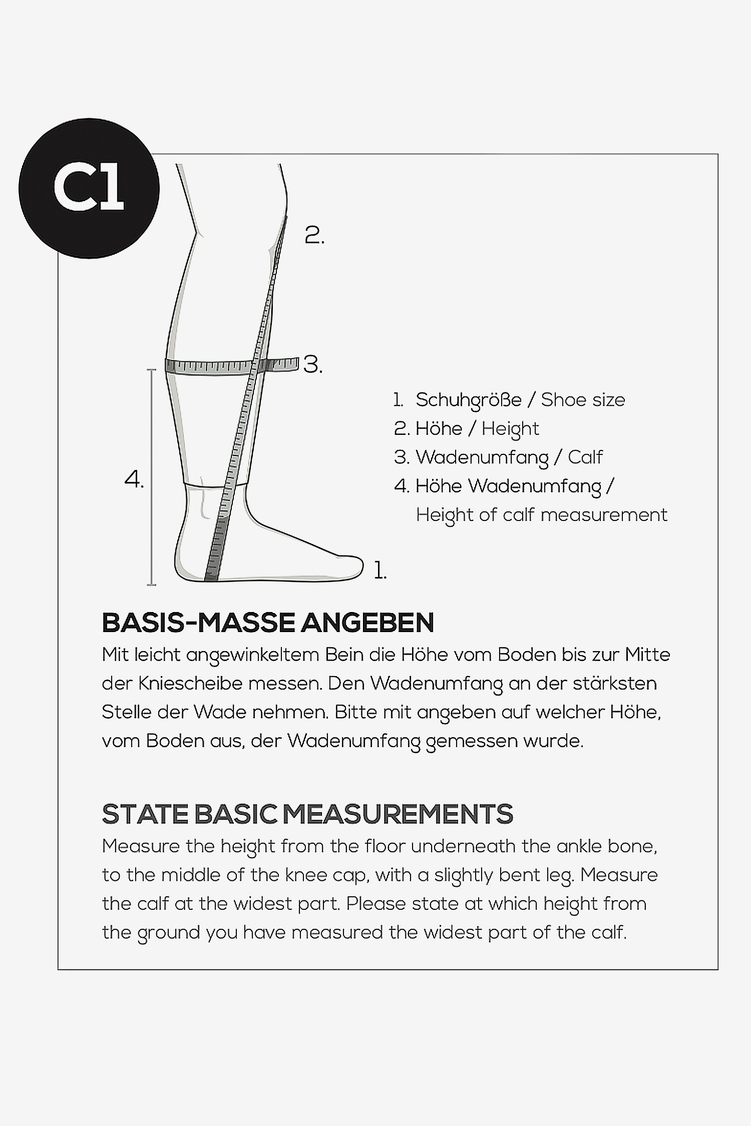 * Viktigt att du är ridklädd när måtten tas * Ha måttband redo * Måtten som tas för denna stöveln är: C1-2, C1-3 och C3-10