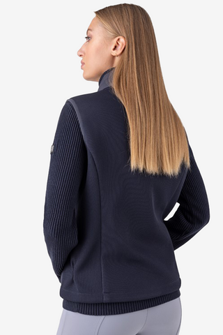 Pulloverns andningsbara design säkerställer komfort under varje ridpass.
