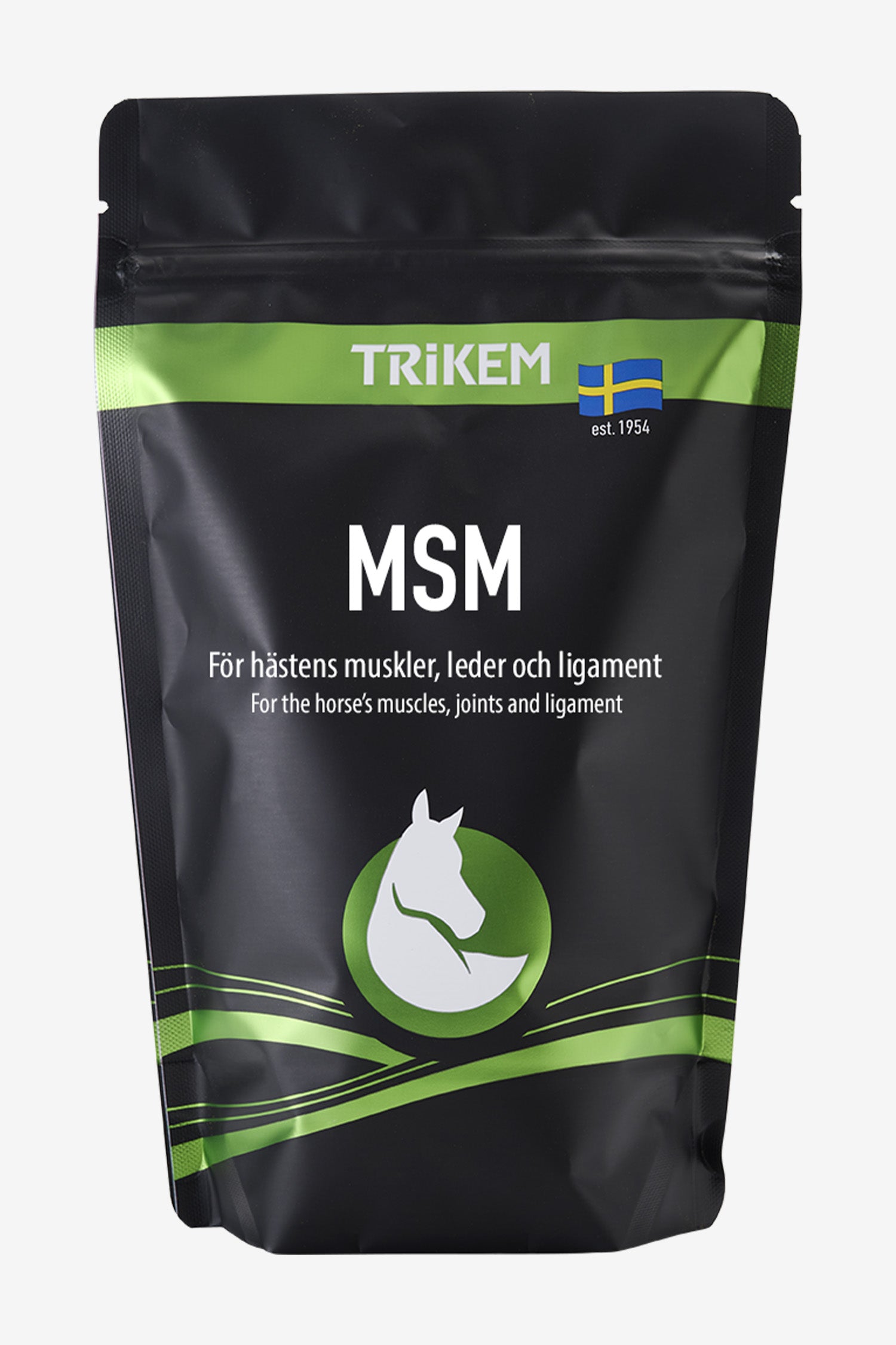 MSM-Metylsulfonylmetan är en naturligt förekommande organisk svavelförening som har en central roll i uppbyggnaden av kroppens celler. MSM bidrar till att öka cellväggens genomsläpplighet vilket förenklar utförsel av slaggprodukter och ger ett effektivt näringsupptag. MSM bidrar också till att förbättra musklernas cirkulationen och syreupptagningsförmåga vilket kan förskjuta mjölksyratröskeln. MSM kan även fungera som en antioxidant och dämpa mängden fria radikaler efter fysisk ansträngning vilket i sin tur kan förbättra hästens återhämtning.