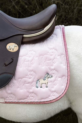 Ge din häst eller ponny en grimma lika stilfull som den själv! Kentucky Velvet Unicorn Glitter är en kombination av lyx och komfort, perfekt för både vardagsbruk och speciella tillfällen. Den är tillverkad i mjuk sammet i en elegant gammelrosa ton och dekorerad med en subtil glittereffekt som ger en sofistikerad glans utan att bli för iögonfallande.
