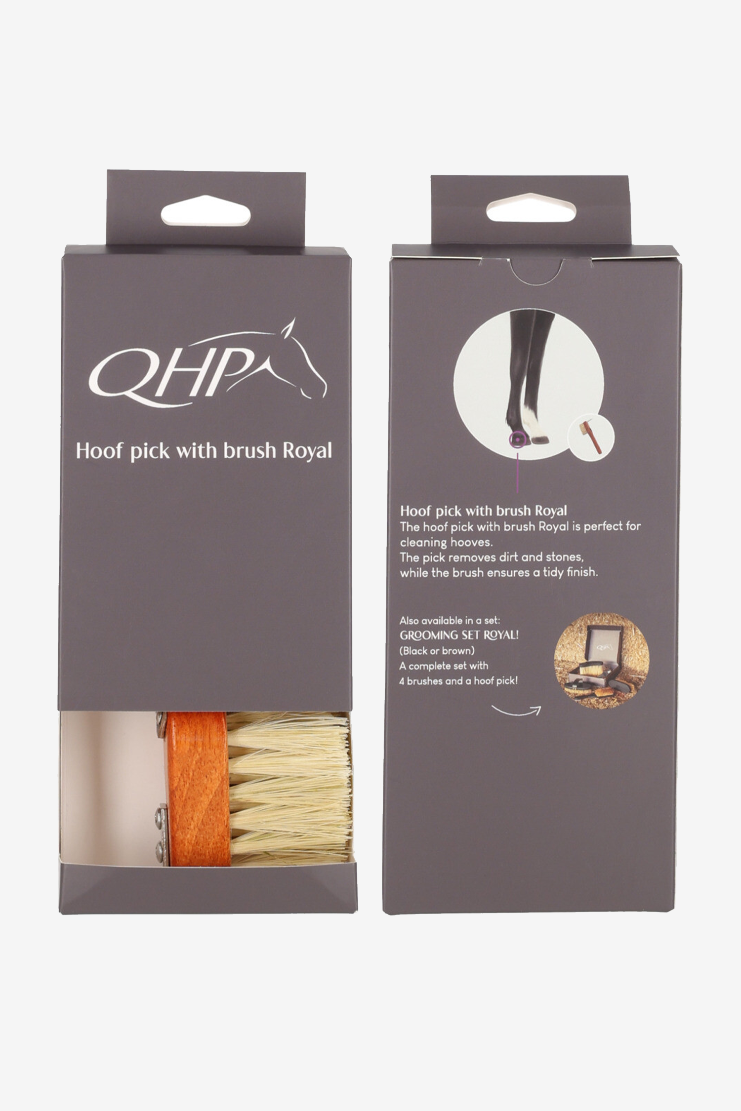 Den integrerade borsten gör det möjligt att borsta rent hoven noggrant efter att du har kratsat, vilket ger en ren och välskött hov. Den stabila konstruktionen och handtaget i trä ger ett bekvämt grepp och gör hovkratsen enkel att använda i den dagliga hästvården.