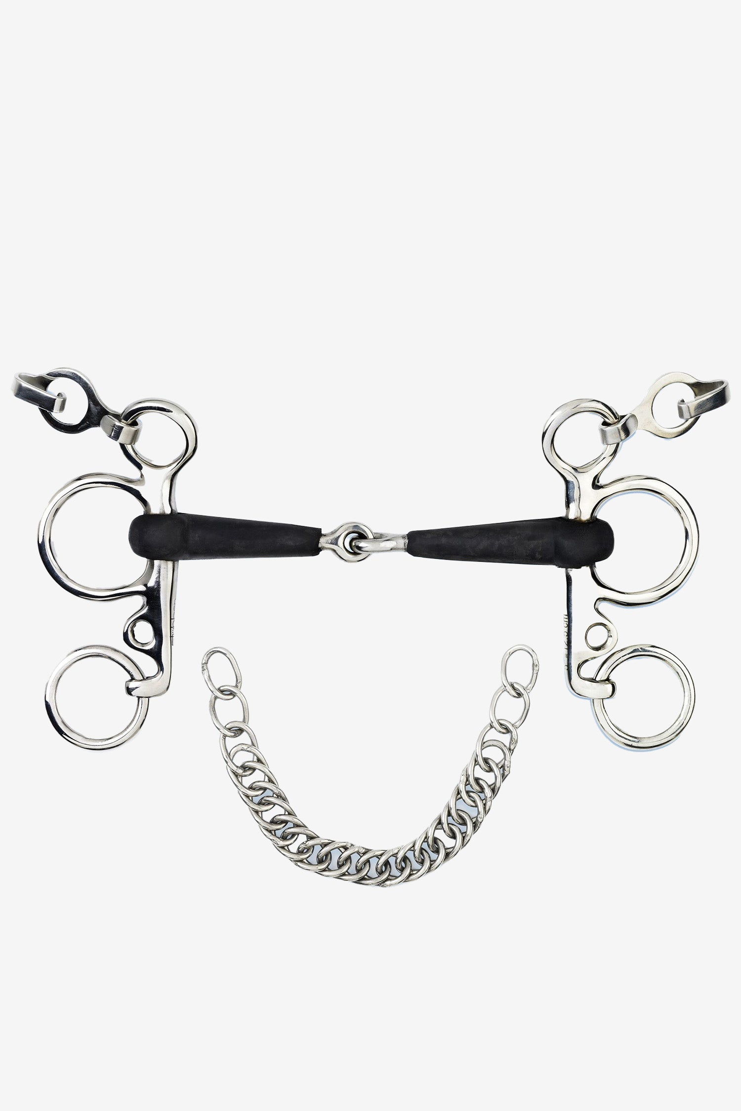 Ett klassiskt pelhambett med tvådelad gummiklädd mundel som gör kontakten mjukare och mer skonsam för hästen. Den är idealisk för hästar som behöver lite mer kontroll men ändå uppskattar en behaglig känsla i munnen.