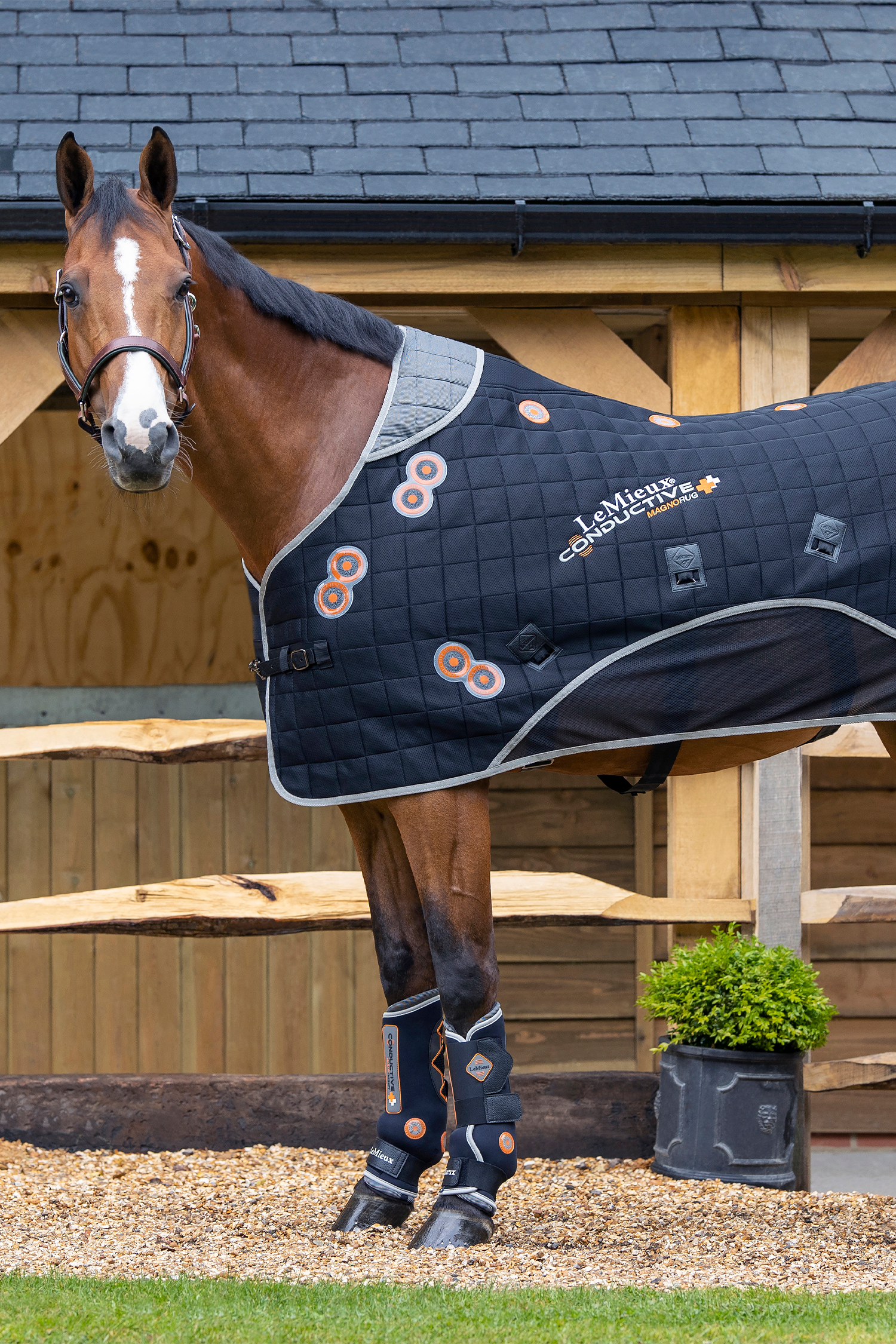LeMieux Conductive Magno Hock Rug IT01056 är ett specialutvecklat täcke för bakknän (hockar) som kombinerar funktionell komfort med terapeutisk effekt. Täcket är designat för att stödja muskel- och ledhälsa vid mild belastning, transport och vila — ett smart val för hästar som behöver extra omsorg i bakbenen.