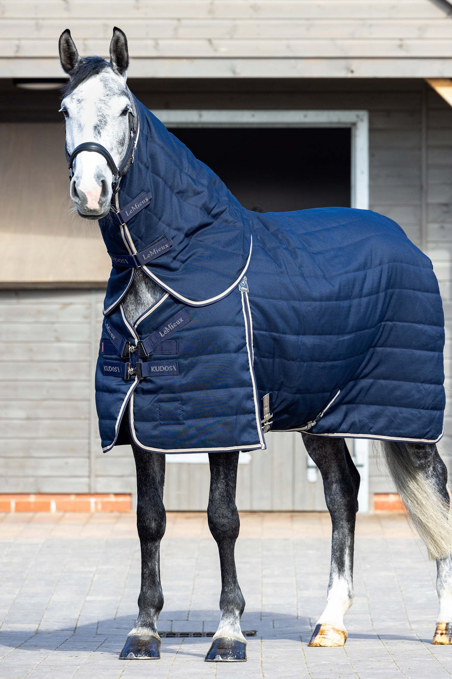 LeMieux Kudos Hals till Stalltäcke 50g Navy är en lätt och funktionell halsdel som kompletterar ditt stalltäcke och ger extra värme över hals och manke. Den är utvecklad för att ge jämn isolering utan att kännas tung eller begränsa hästens rörelsefrihet. Halsdelen passar perfekt för stallanvändning under kyligare dagar eller som extra skydd för klippta hästar.