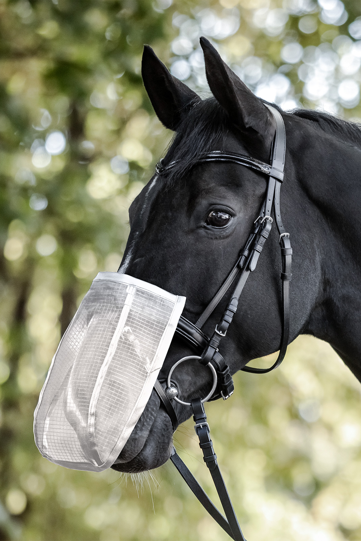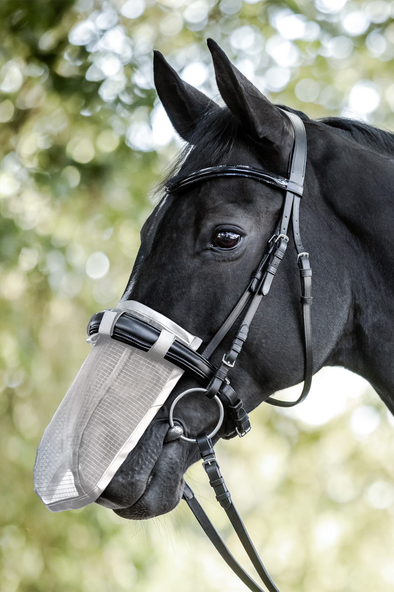 Nose Fly Shield är ett smidigt och effektivt skydd som skyddar hästens mule mot insekter och solens skadliga strålar. Perfekt för hästar som är känsliga för flugor eller har behov av extra skydd mot UV-strålning.