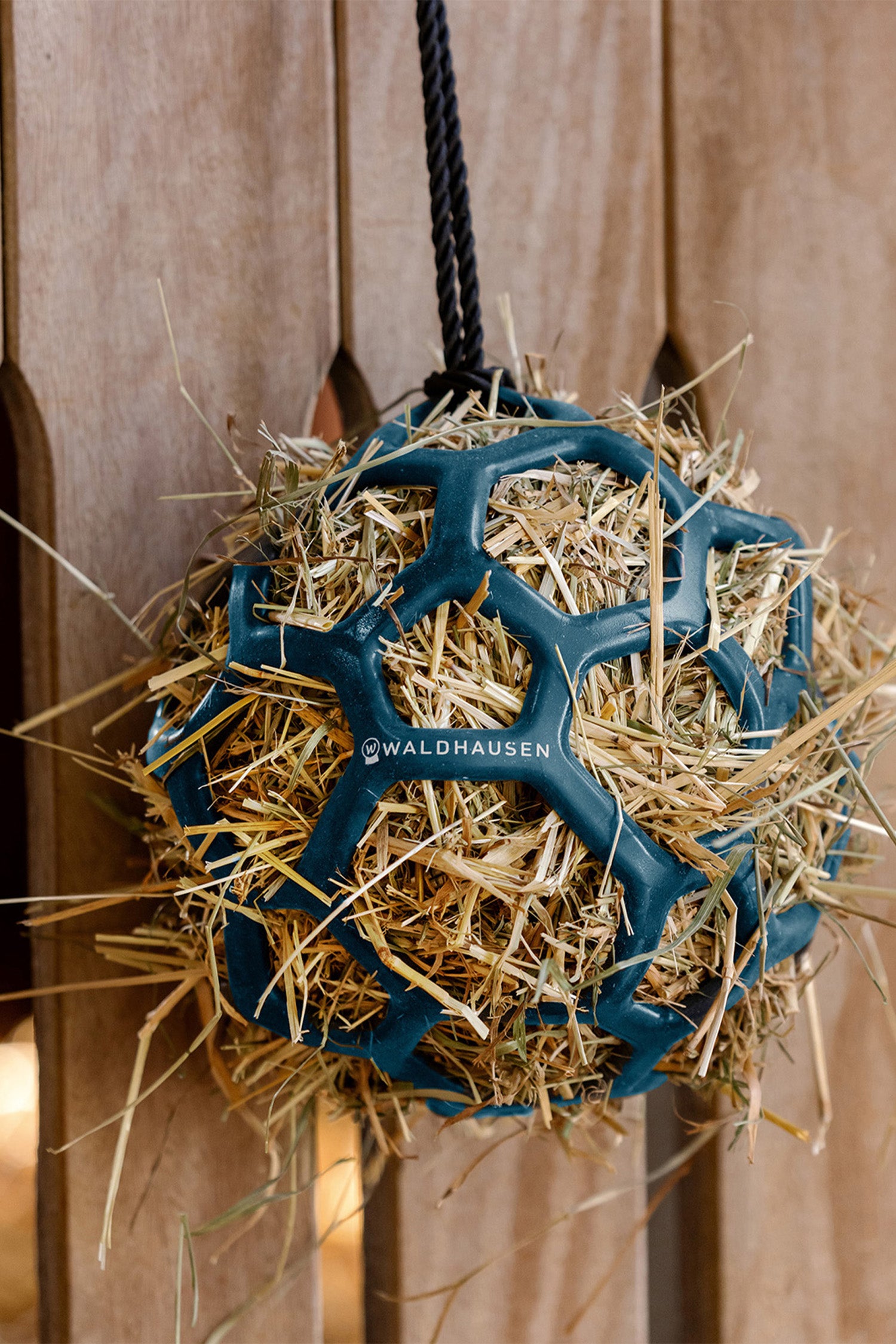Håll din häst aktiverad och nöjd med Waldhausen Hay Ball – den perfekta lösningen för att både förebygga tristess och förlänga ättiden. Bollen fylls enkelt med hö eller godsaker som morötter och äppelbitar, och tack vare det medföljande 2 meter långa bandet kan den hängas upp i boxen eller hagen.