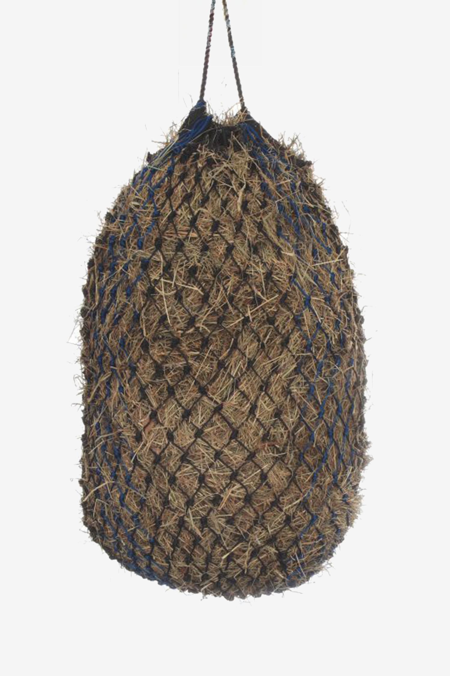 Storlek S rymmer cirka 6,5 kg hö eller hösilage och passar utmärkt för mindre fodergivor, ponnyer eller kortare perioder mellan utfodring. Det slitstarka materialet klarar daglig användning i stallmiljö och håller fodret samlat och fräscht.