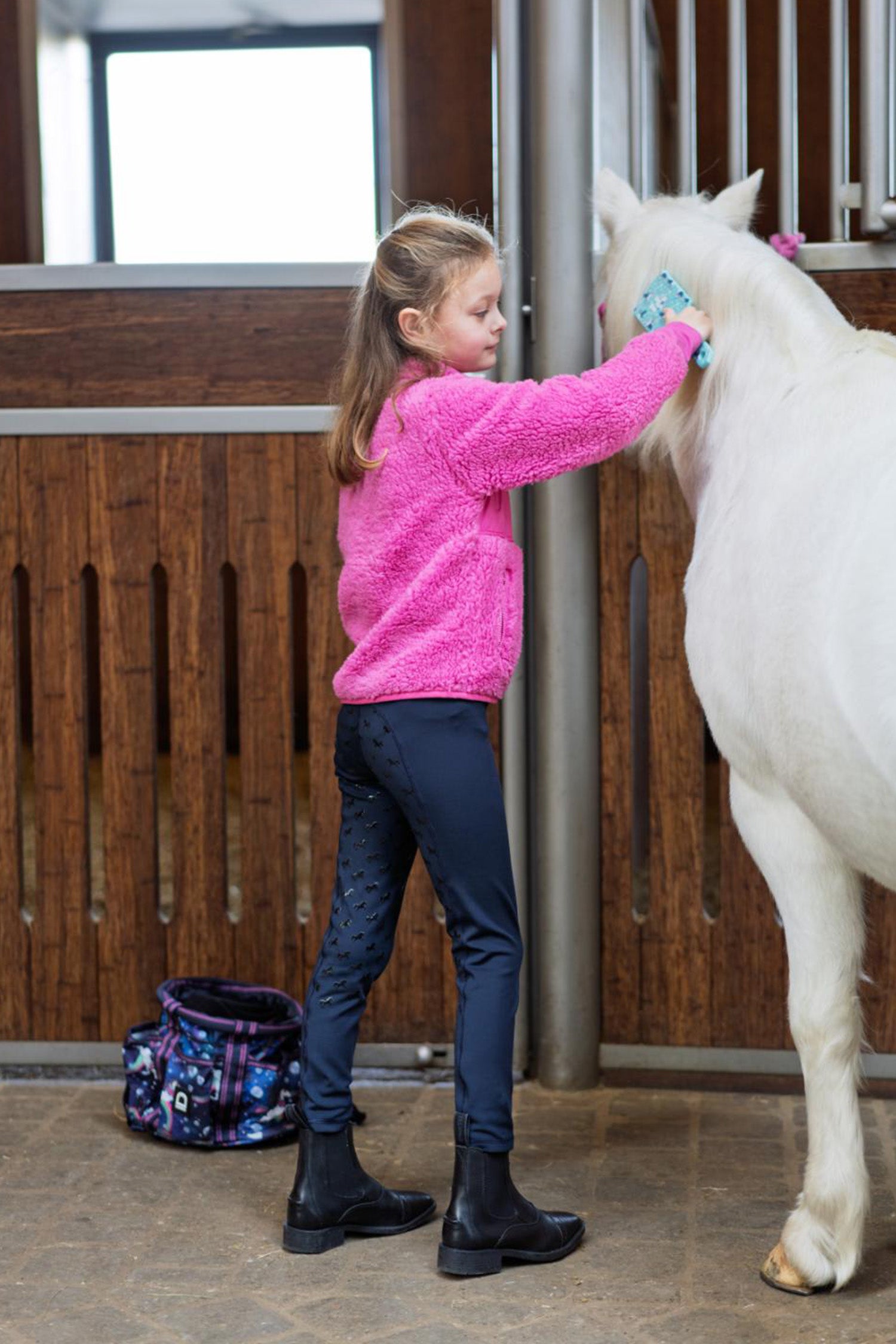 Färgglad borste som matchar säsongens EQ & HG KIDS-produkter. De fasta, rundade piggarna reder skonsamt ut tovor i både man och svans – och funkar lika bra till barnets eget hår. Det långa, svängda handtaget ger bra grepp även för små händer.