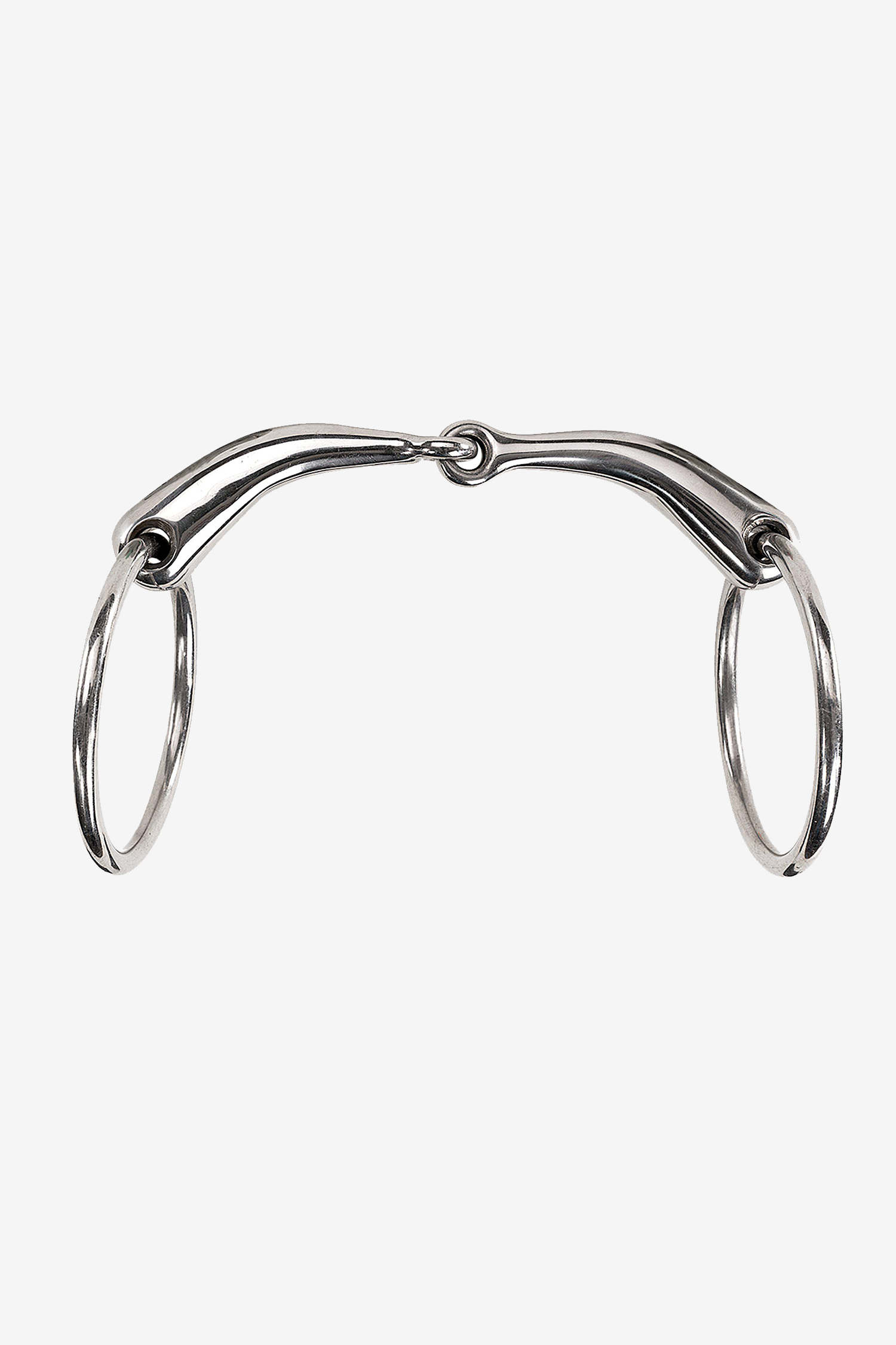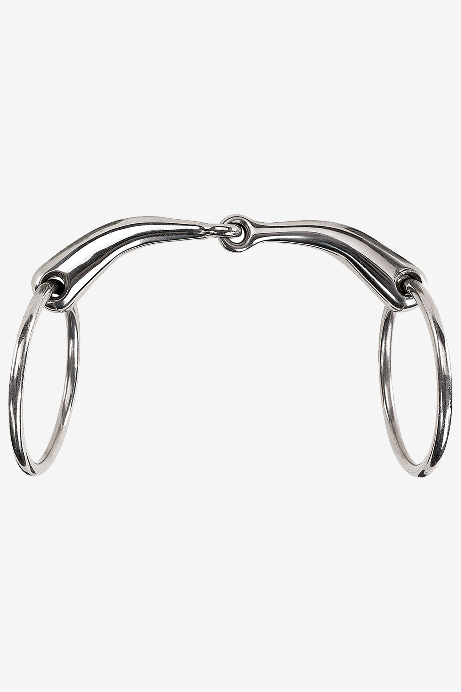 Det massiva, rostfria stålet ger lång hållbarhet och en tydlig men vänlig känsla i handen. De fasta ringarna hjälper bettet att ligga still i mungipan och minskar risken att nypa, vilket bidrar till lugnare kommunikation mellan häst och ryttare.