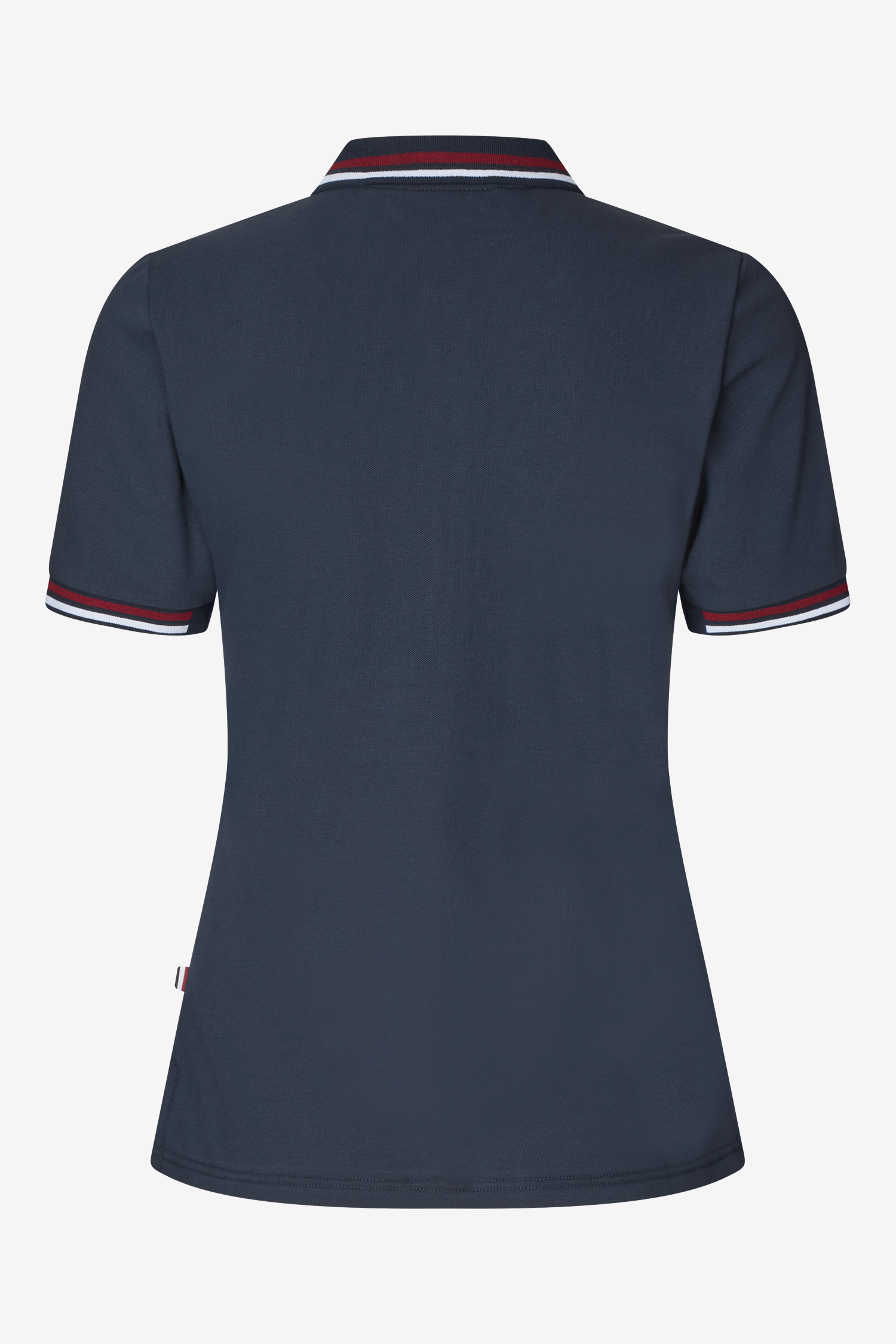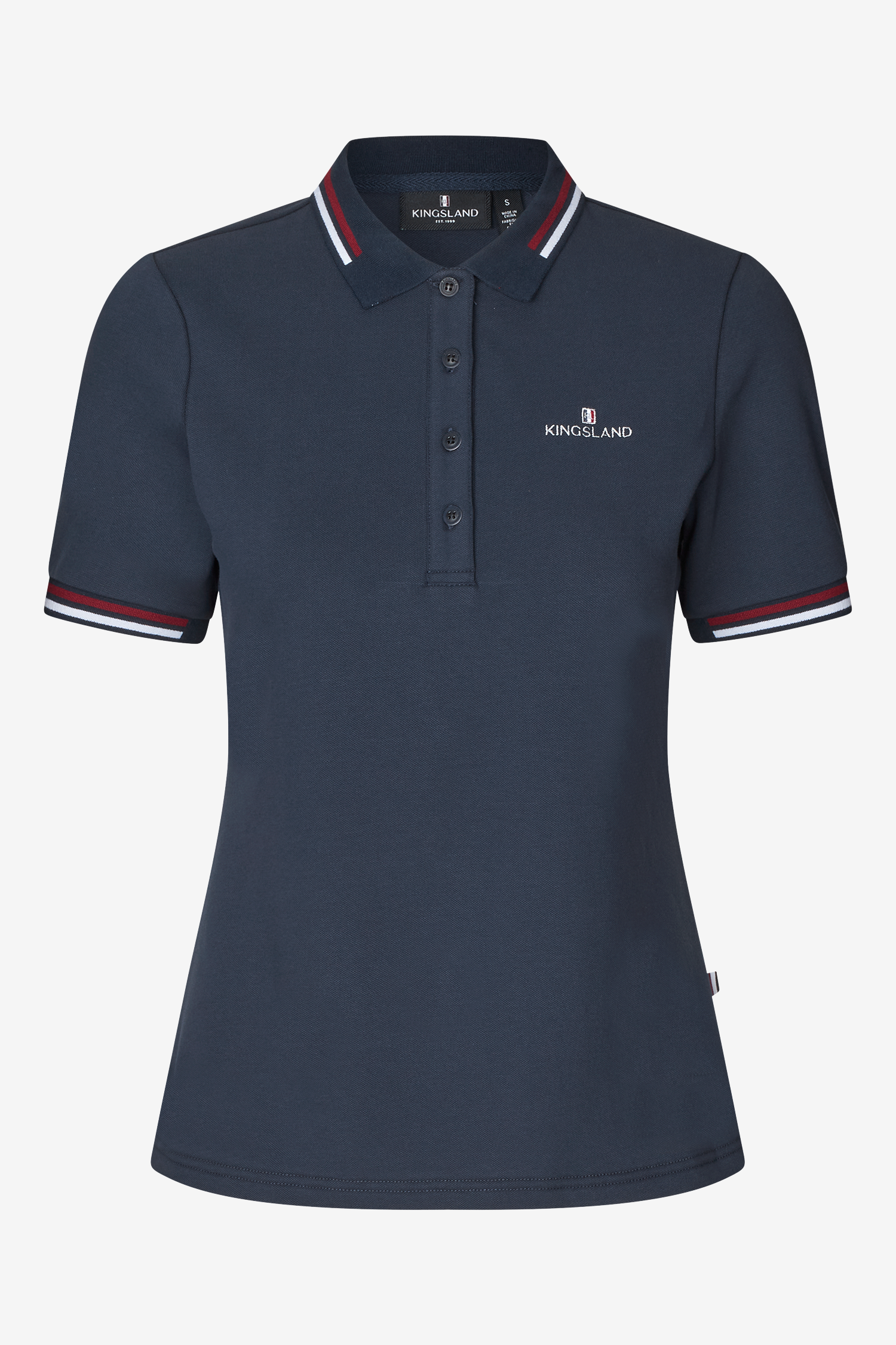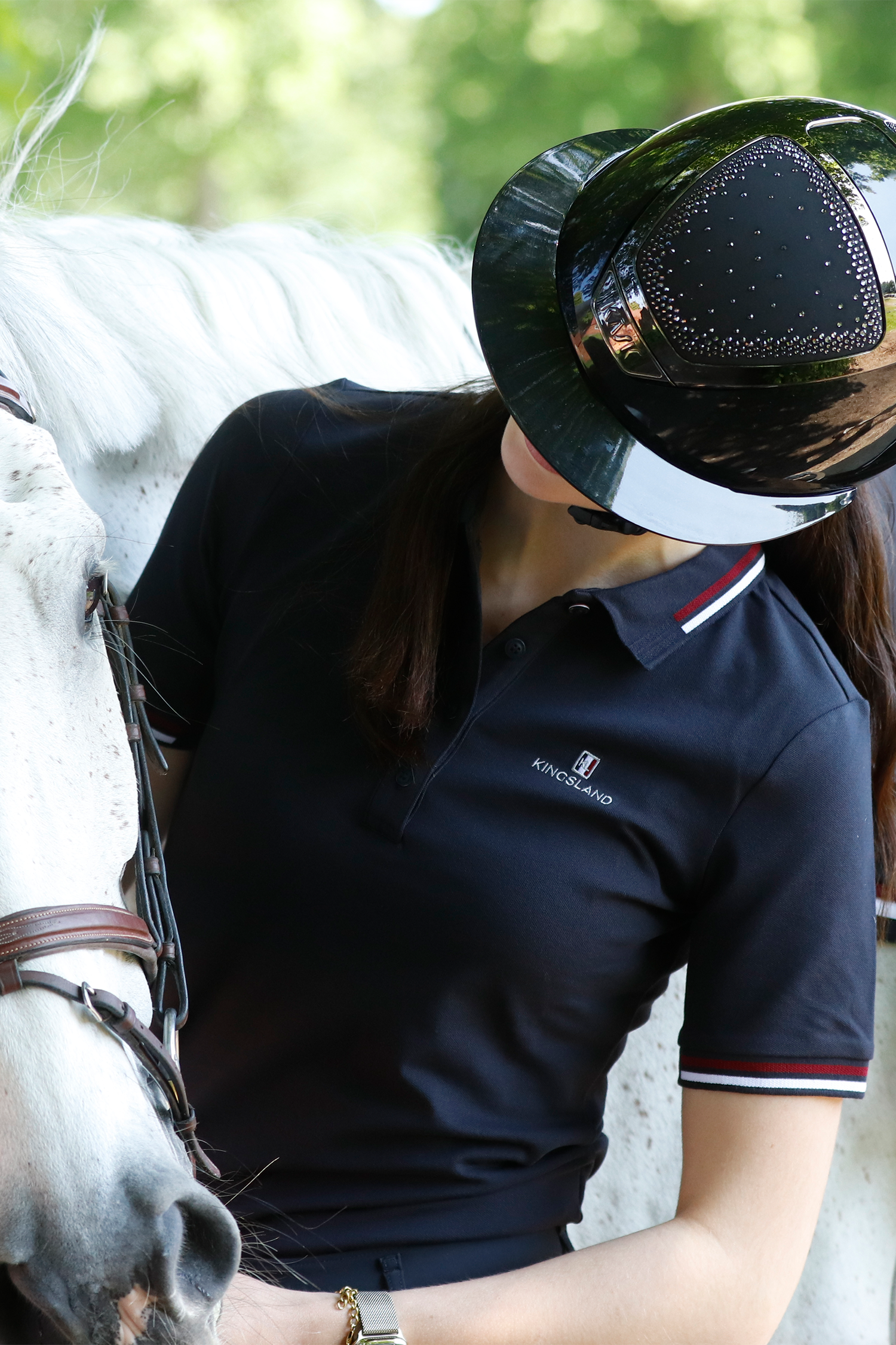 Det mjuka, följsamma pikématerialet känns behagligt mot huden och fungerar lika bra under ridjackan som ensam varma dagar. Knappslån framtill och en snygg krage ger ett prydligt intryck, medan den diskreta Kingsland-detaljeringen gör att tröjan passar lika bra till ridbyxorna som till jeans eller shorts.