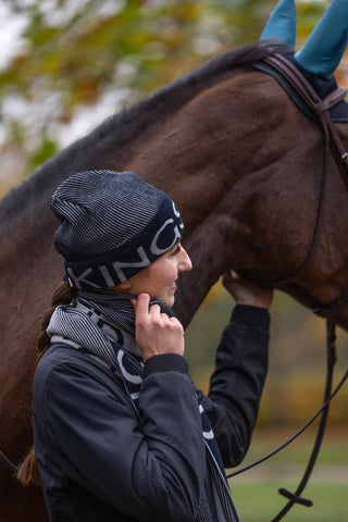 Tillverkad i ett mjukt och värmande material som är skonsamt mot huden. Den neutrala Quarry-färgen (ljusgrå/navy) gör den enkel att matcha med både ridjackor och vardagskläder, och den diskreta Kingsland-loggan tillför en exklusiv känsla.
