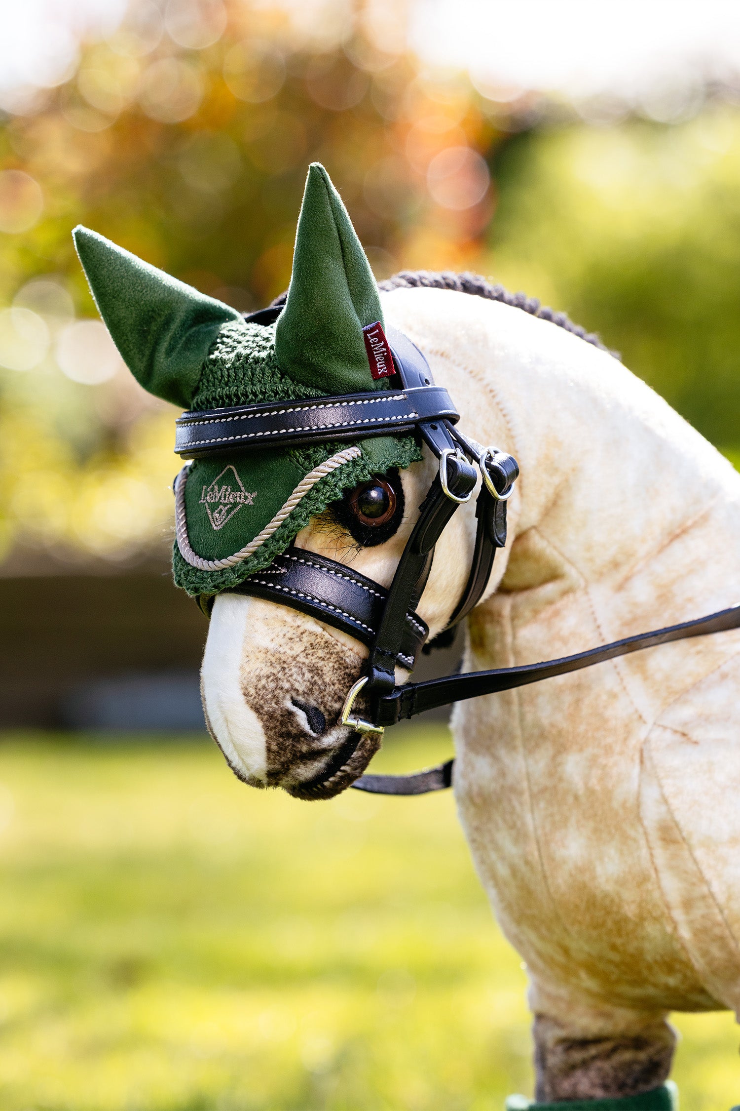 Toy Pony Fly Hood Hunter Green är en noggrant utformad miniatyrversion av LeMieuxs klassiska huva och ett idealiskt tillskott till din Toy Pony-utrustning. Den handvirkade designen ger ett autentiskt och detaljrikt uttryck, medan de supermjuka mockaliknande öronen gör huvan både bekväm och verklighetstrogen.