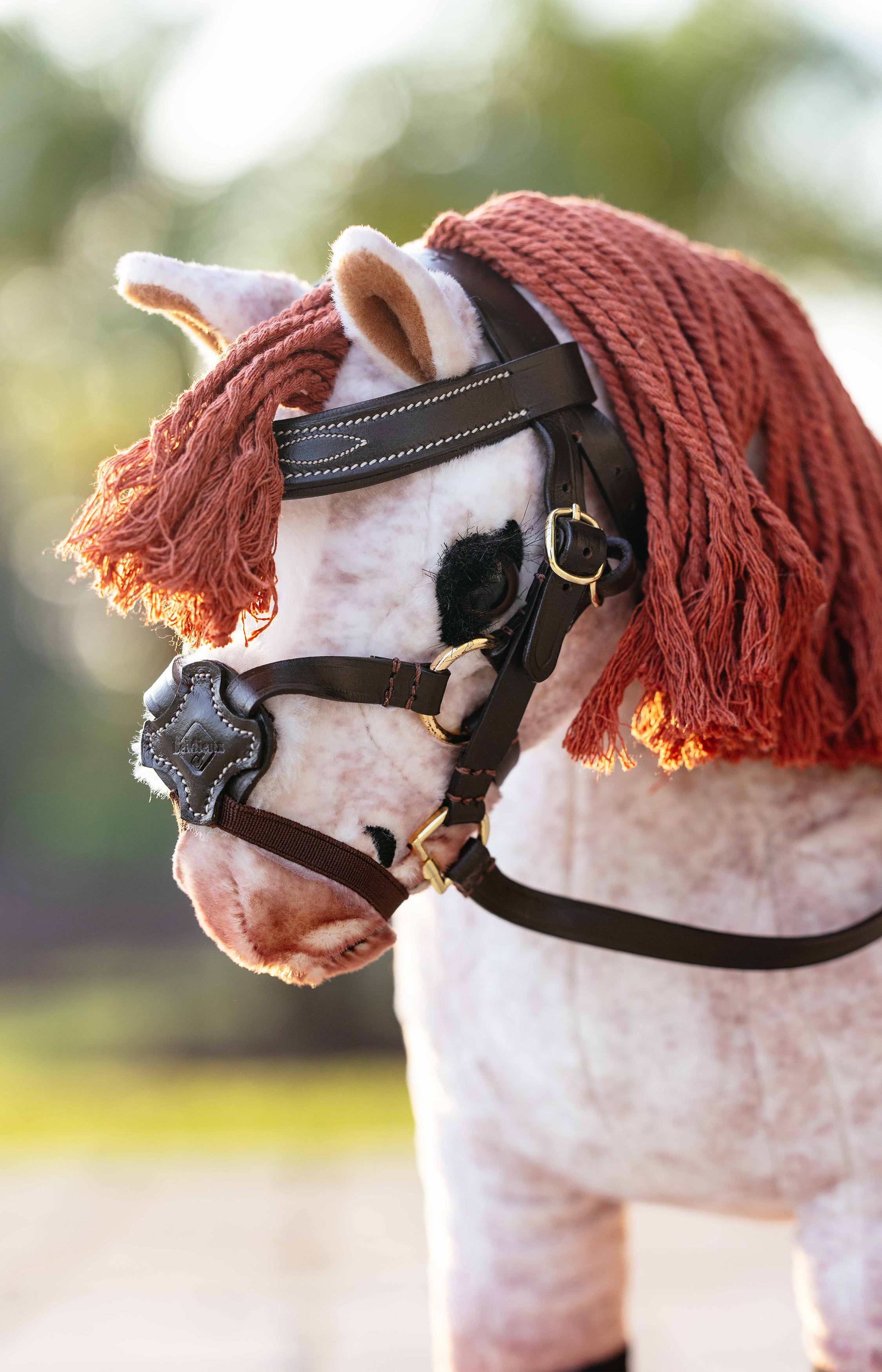 Med fullt justerbara sidostycken, korsad nosgrimma och hakrem får unga ryttare möjlighet att lära sig hur ett träns fungerar och hur man anpassar passformen på rätt sätt. En pedagogisk och rolig detalj som uppmuntrar till lek, lärande och intresse för hästvård.