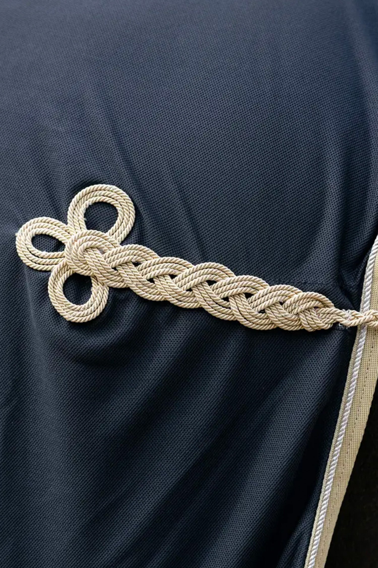 Det stilrena utförandet i klassiska färger, tillsammans med kontrastpasspoal och ett traditionellt flätat höftornament, ger täcket en exklusiv känsla som lyfter helheten på tävlingsplatsen.