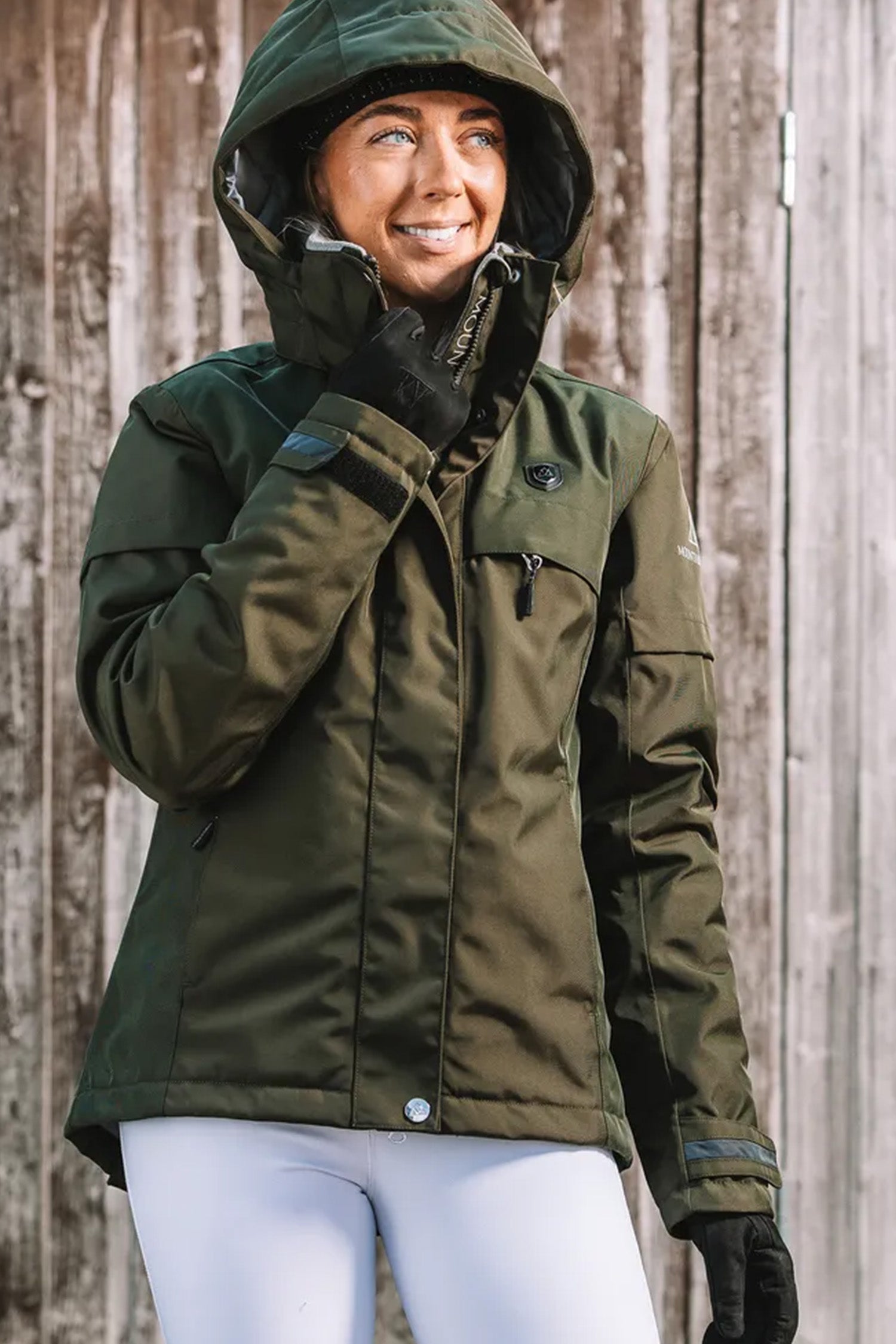 Uppdaterad klassiker från Mountain Horse – en damjacka för ridning i alla väder. Den snygga, kvinnliga passformen kombineras med smarta funktionsdetaljer som håller dig varm, torr och rörlig i sadeln. Bilden visar den skyddande huvan och den rena, sportiga looken som funkar lika bra i stallet som på uteritten.