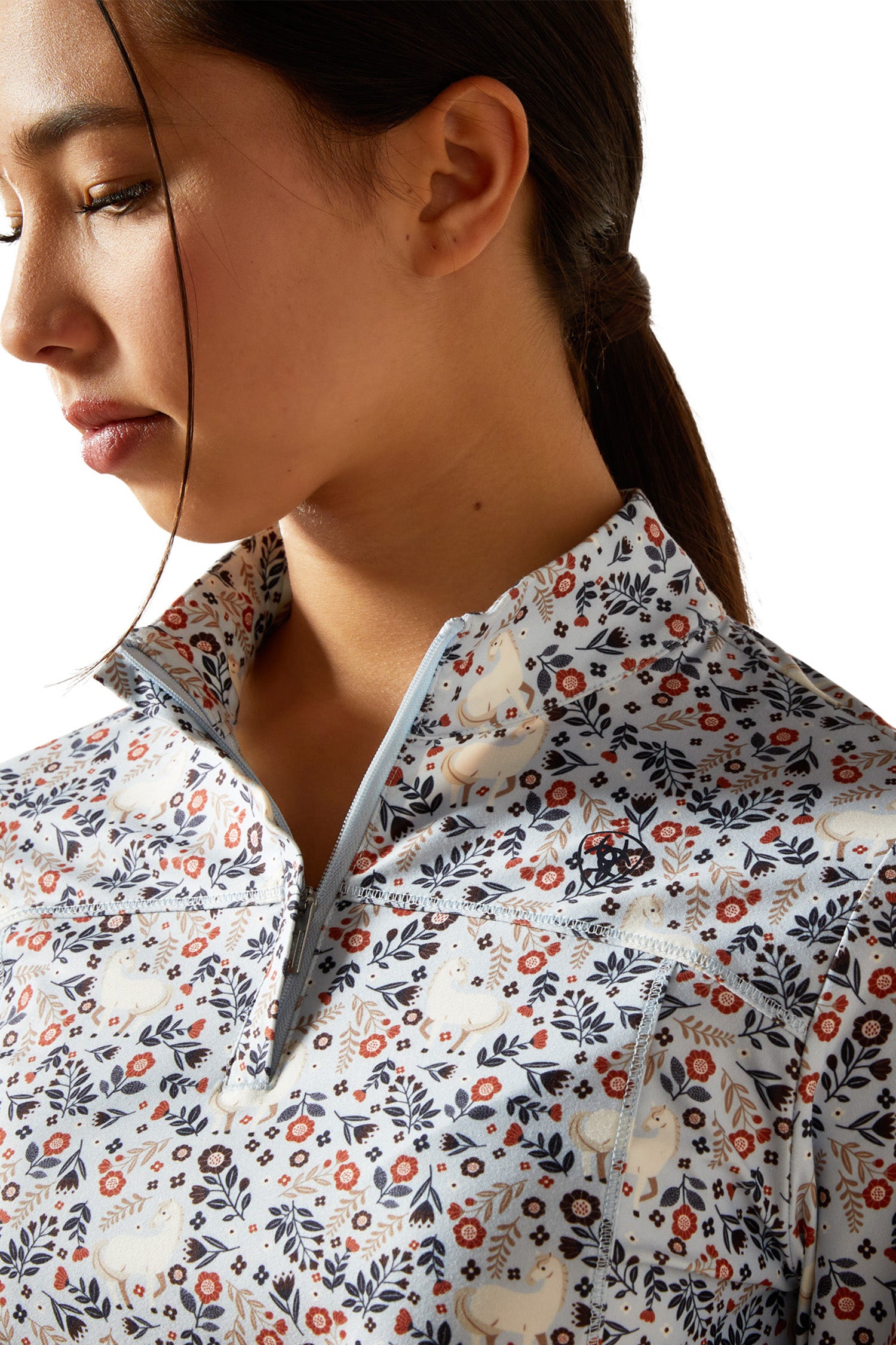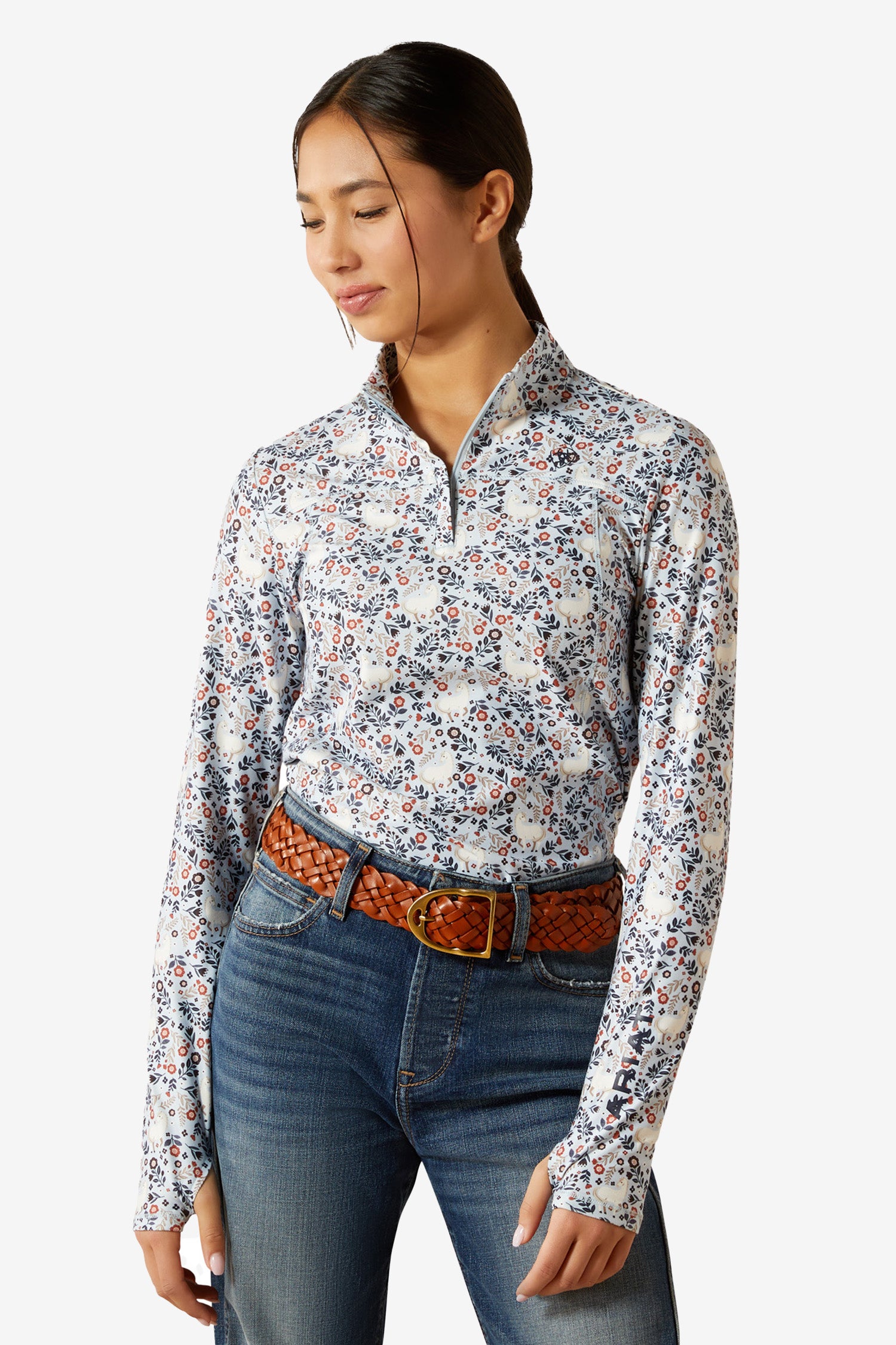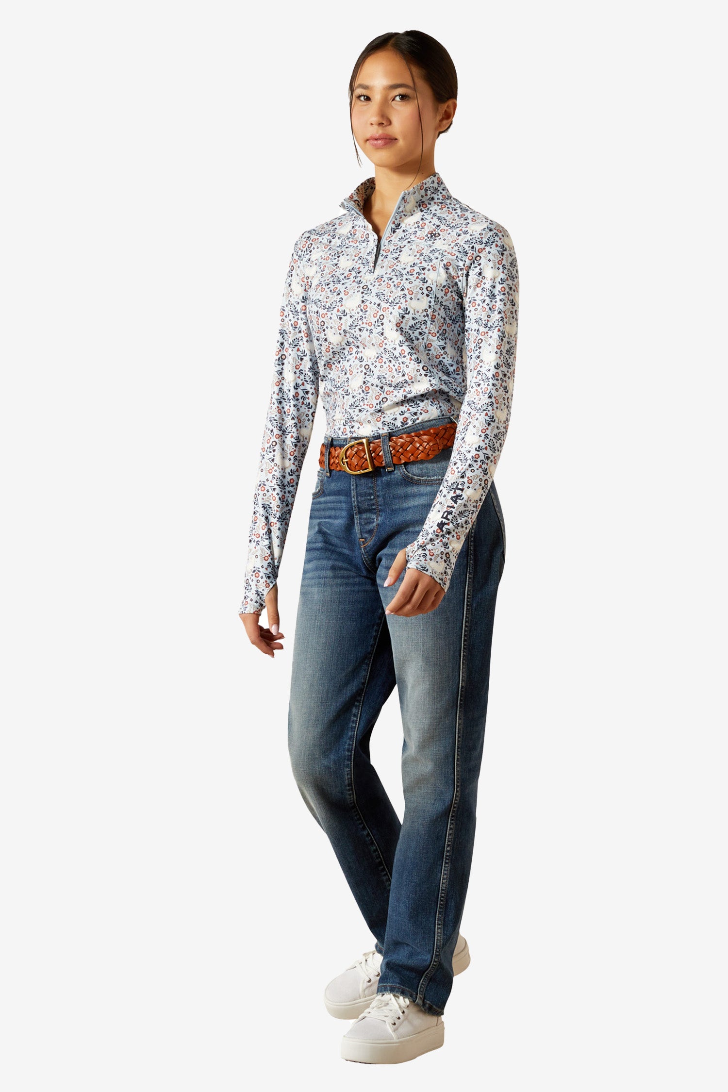 Smidig långärmad topp för ridning året runt. AriatTEK® ger behaglig temperatur i skiftande väder, medan Moisture Movement Technology™ transporterar bort fukt så du håller dig torr – i sadeln och i stallet. Den borstade, elastiska trikån är mjuk mot huden och följer varje rörelse.
