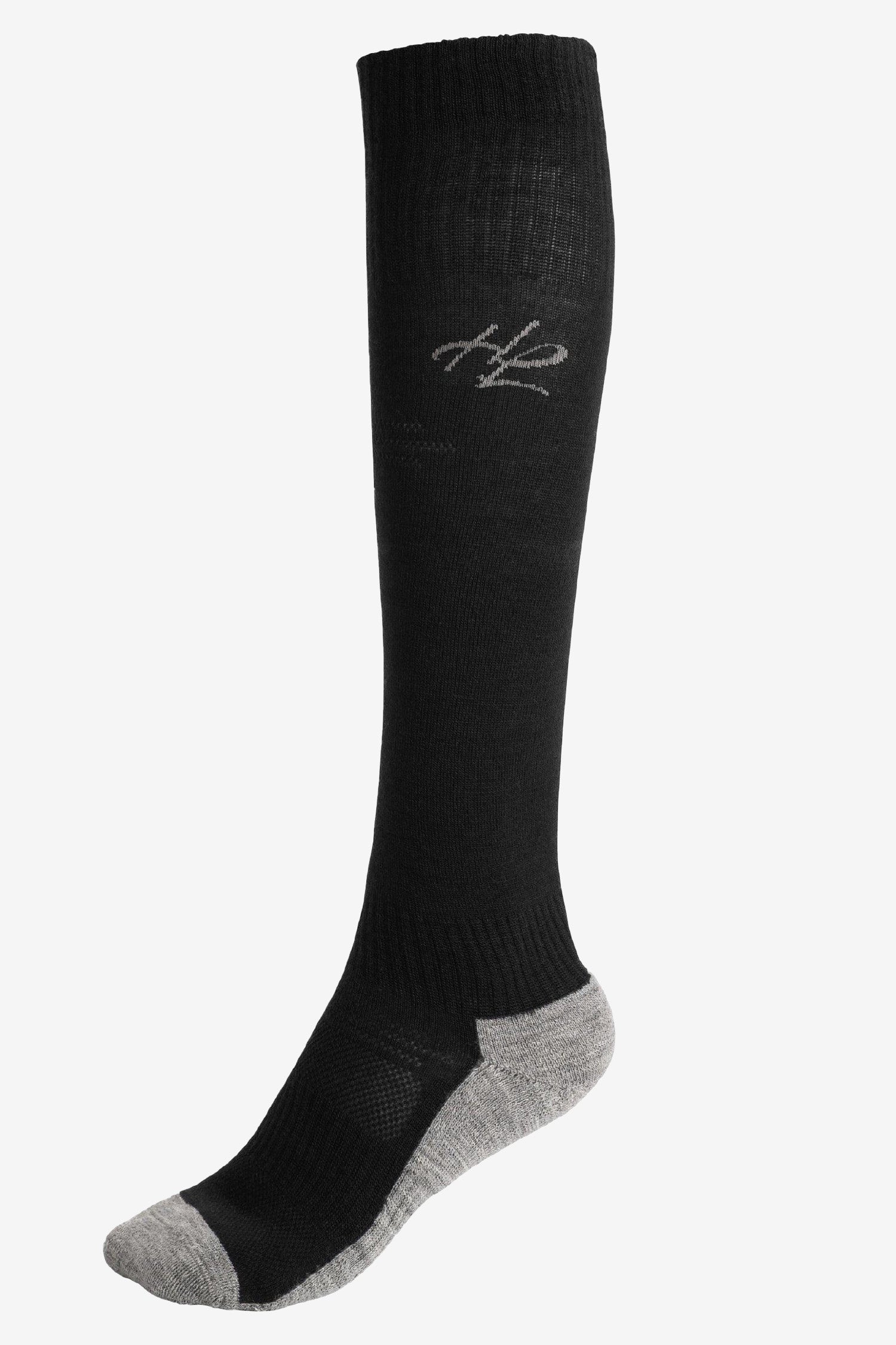 Den smarta materialmixen med ull och akryl ger effektiv värme och god fukttransport, medan polyamid och elastan bidrar till slitstyrka, stretch och en passform som sitter där den ska – hela dagen. Strumpan har resår upptill för att hållas på plats, och pryds av HL-loggan på båda sidor för en stilren look.