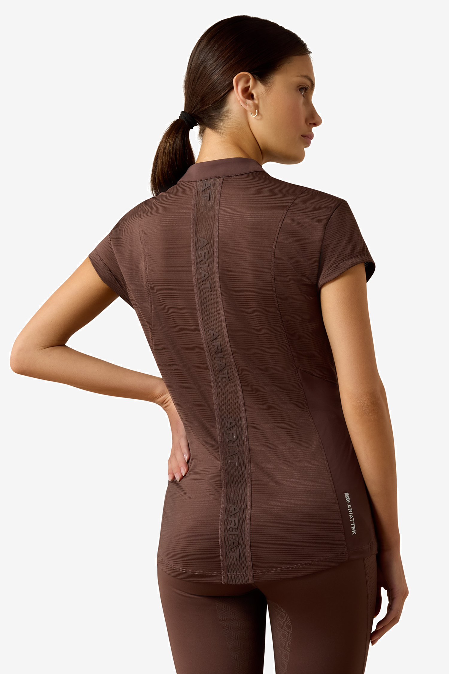 Den halvlånga dragkedjan framtill gör det enkelt att justera ventilationen efter behov och ger en flexibel passform. Meshpaneler längs sidorna bidrar till ökat luftflöde och förbättrad fukttransport, vilket gör tröjan behaglig att bära under hela ridpasset. Den härliga färgen pommel brown ger ett mjukt och stilrent uttryck som passar både i stallet och till vardags.