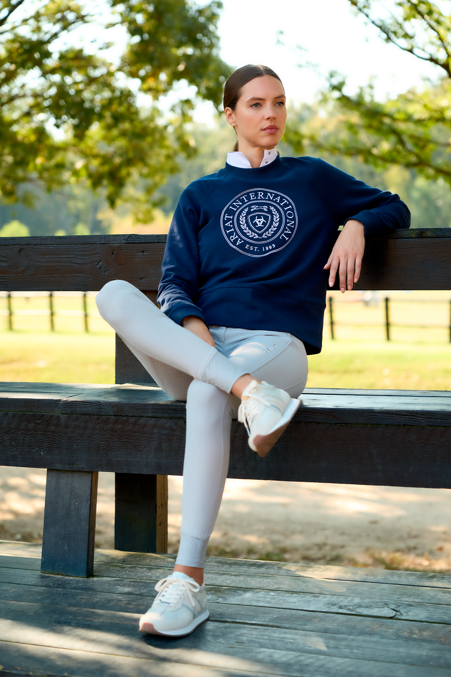 Ariat Martine sweatshirt är ett mjukt och stilrent plagg som passar perfekt när temperaturen sjunker. Den är tillverkad i en extra mjuk fleeceblandning med ekologisk bomull och har en något kortare längd som gör den idealisk att bära över tävlingströjan mellan klasser eller under svalare träningspass.