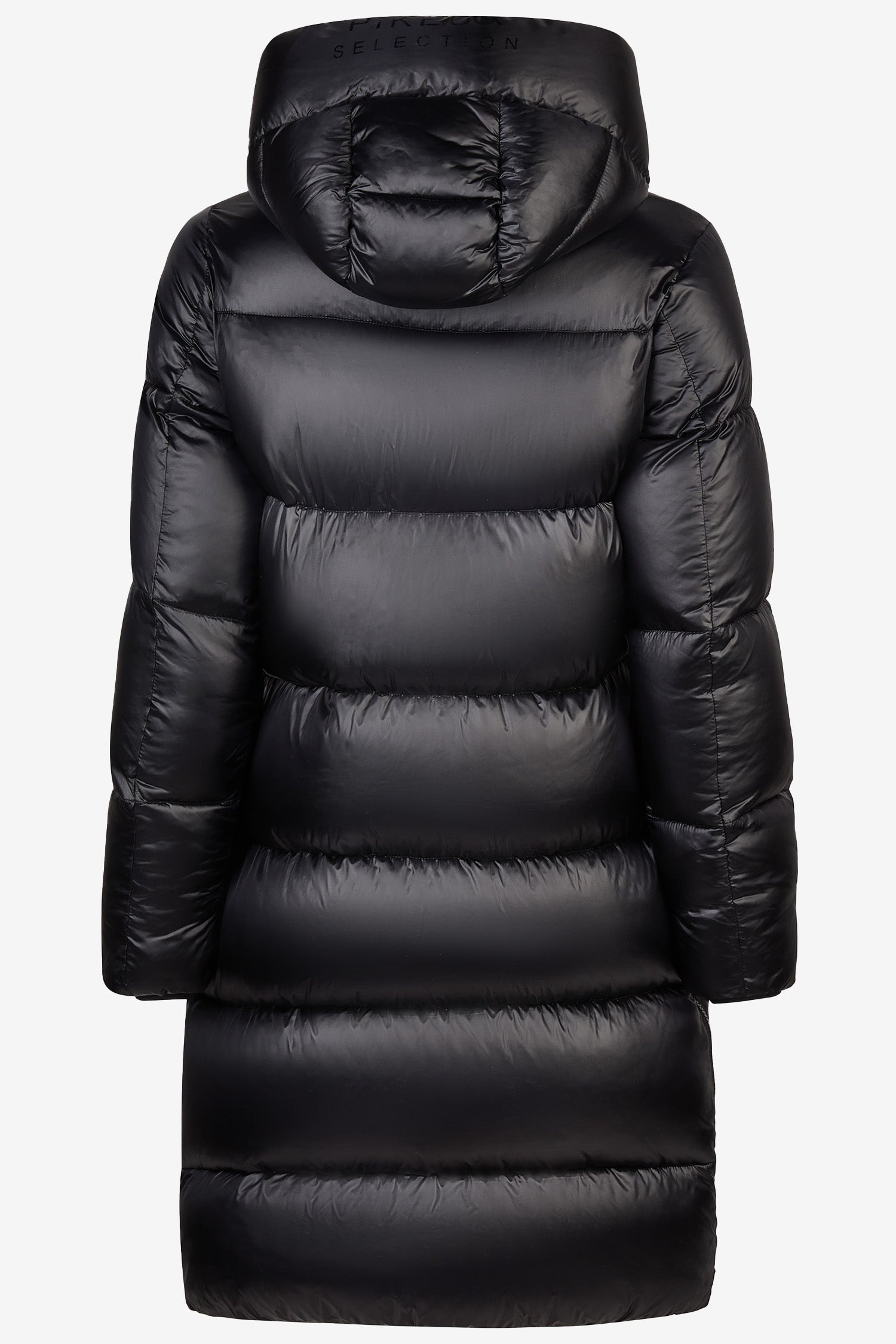 Pikeur Quilted Coat är en elegant och funktionell lång dunimitation-kappa med fast huva, perfekt för kalla vinterdagar. Den är tillverkad i ett högkvalitativt, skimrande nylontyg och har en figurnära passform med innerresår som ger en smickrande siluett.