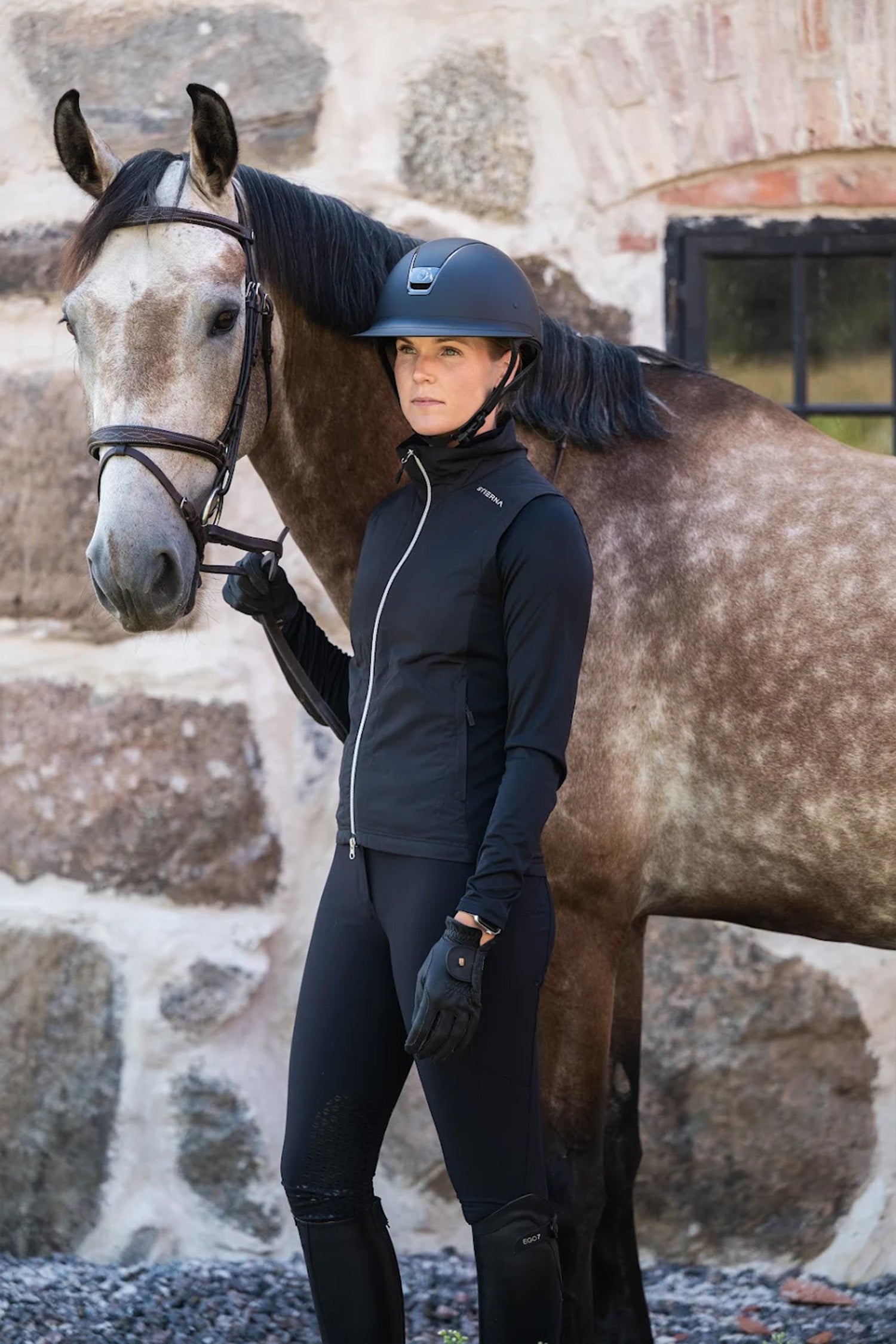 Stierna Ami Väst är skapad för den aktiva ryttaren som vill ha ett plagg som fungerar året runt. Den kombinerar vindtäthet, stretch och lätt värmeisolering i en stilren design – perfekt för både stall och ridning. En funktionell och mångsidig ridväst som ger full rörelsefrihet och skyddar mot kyliga vindar utan att bli för varm.