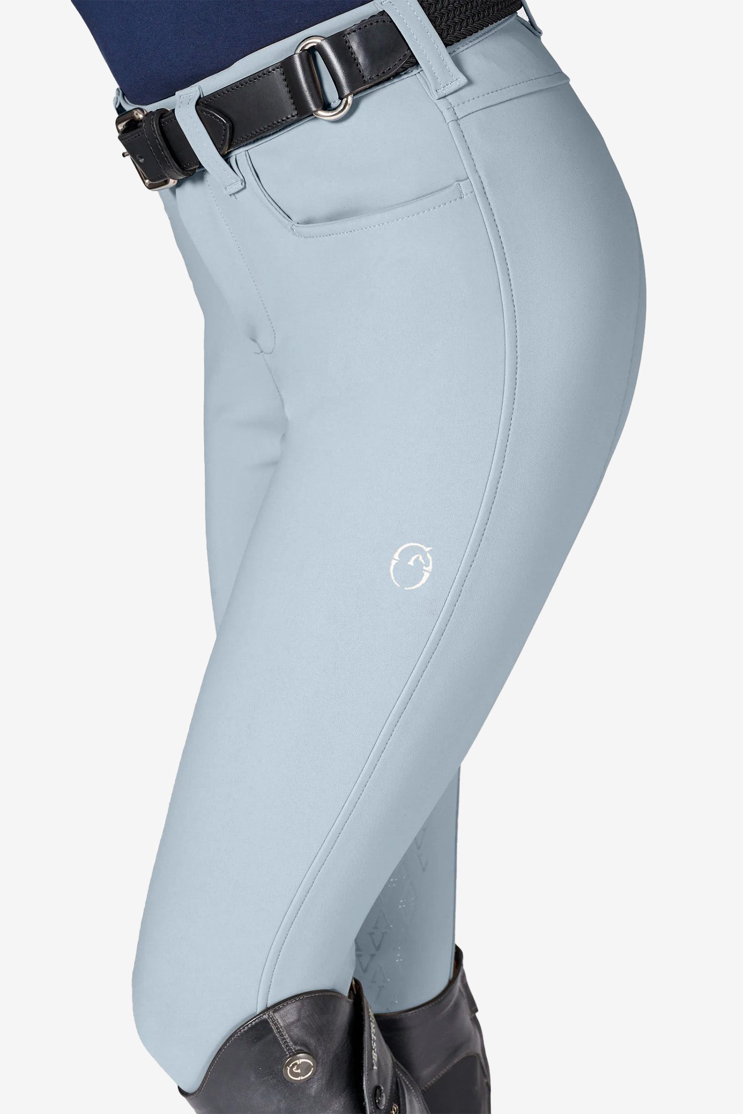 Tyget är slitstarkt men samtidigt mjukt och följsamt, vilket gör modellen till en tidlös bas i ridgarderoben. Den rena designen utan bakfickor ger en slät siluett och maximal komfort i sadeln, medan två praktiska sidofickor ger funktion utan att störa passformen.