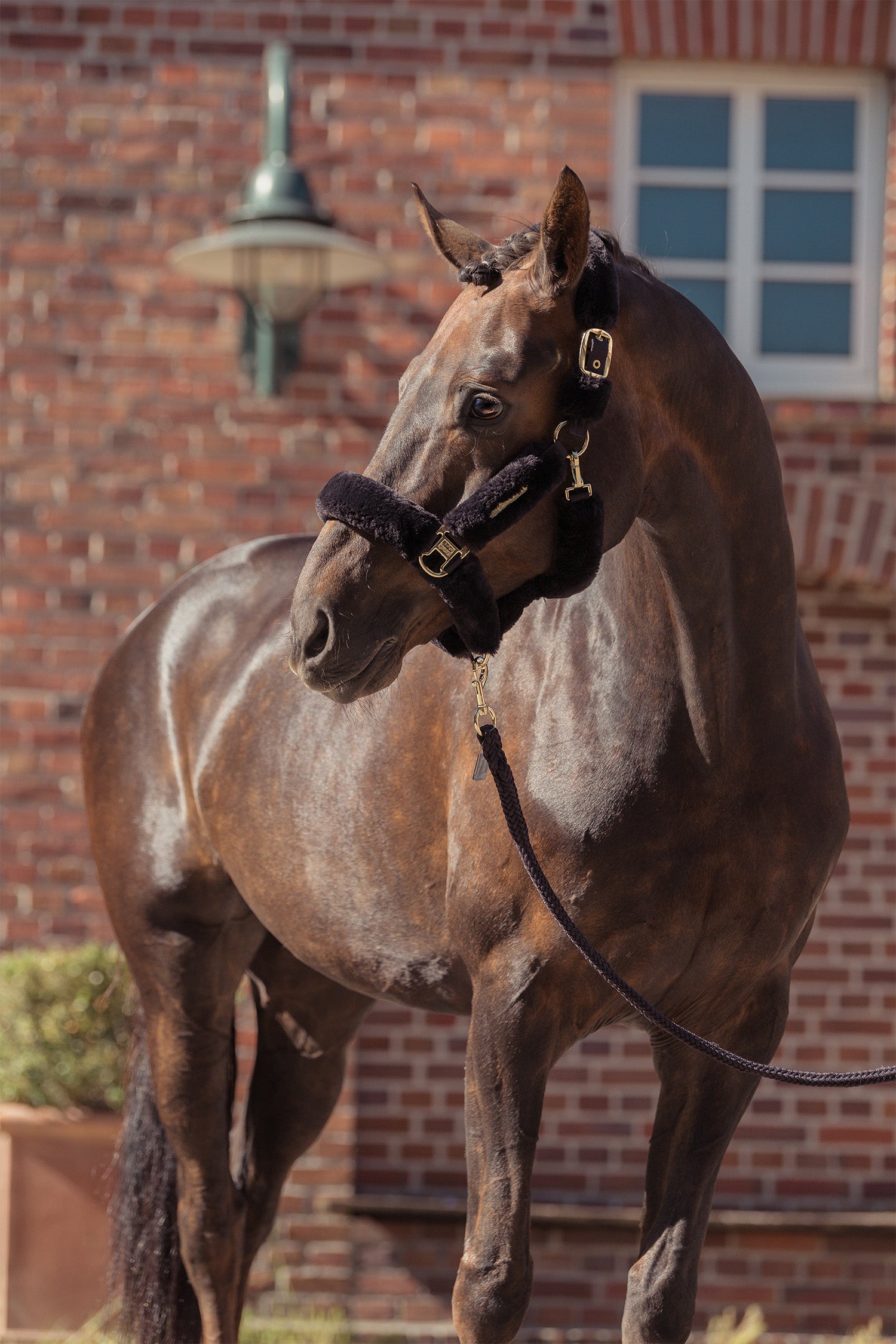 Under fuskpälsen finns en kraftig konstruktion som ger styrka och hållbarhet. Grimman är justerbar på båda sidor med klassiska tungspännen, vilket gör det enkelt att få en bra passform. Guldfärgade beslag och en Eskadron-metallbricka på sidan sätter en elegant finish.
