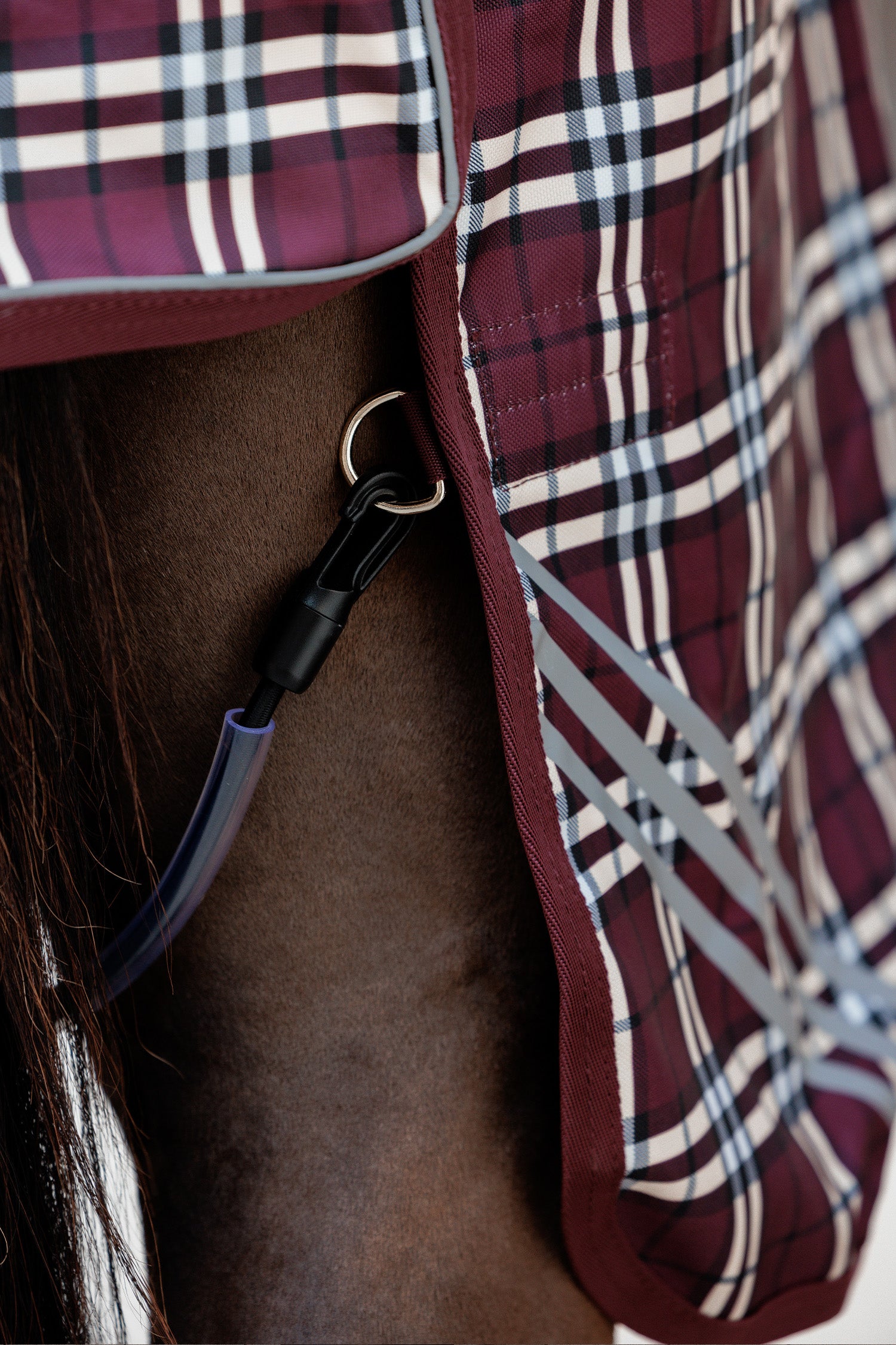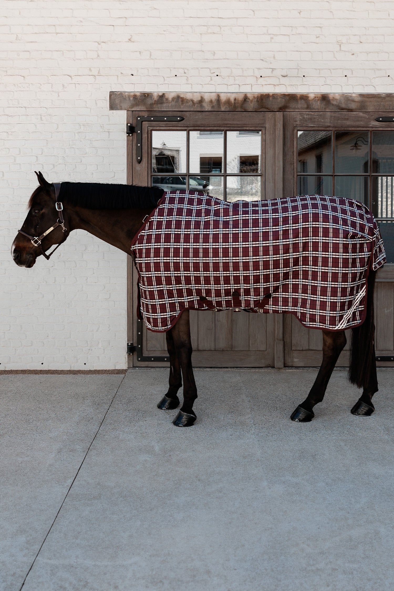 Kentucky Turnout Rug All Weather Waterproof Comfort i exklusivt Bordeaux Checkprint-mönster är det perfekta valet för hästen som förtjänar maximal komfort, skydd och elegans. Täcket kombinerar tidlös design med modern funktionalitet och är framtaget för att klara även de tuffaste regndagarna utan att kompromissa med passform eller stil.