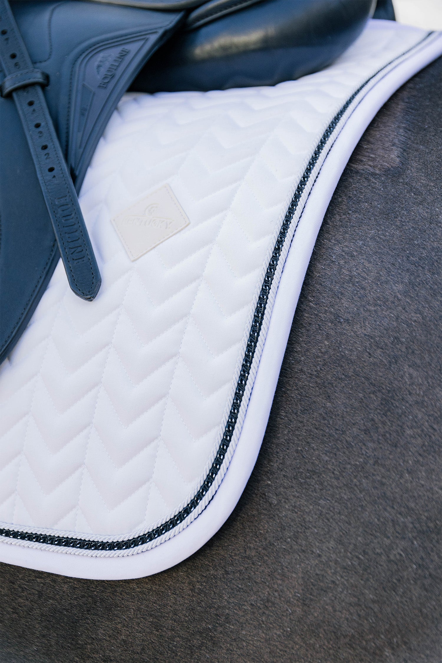 Ge din häst en elegant och iögonfallande look med Kentucky Saddle Pad Metal Chain – ett schabrak som kombinerar stil, komfort och funktion. Den unika metallkedjan omgiven av ett skimrande kantband ger en sofistikerad finish som verkligen får dig att sticka ut på både träning och tävling.