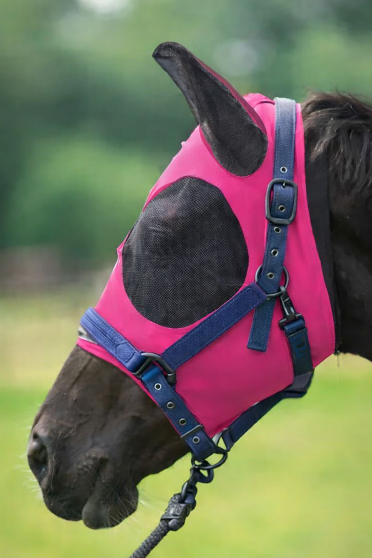 Huven är utrustad med formade 180 graders kupor vid ögonen som ger maximal synlighet samtidigt som de håller flugor och andra insekter borta. Meshpaneler vid öronen och runt ögonen ger extra ventilation och bidrar till att hålla hästen sval under varmare dagar.