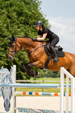 Diamanté är handgjord med ett fint virkat mönster, passpoaler som går ton-i-ton och en snyggt detaljerad rad med glittriga stenar. Det bekväma och följsamma tyget över öronen ger hästen en god komfort och rörelsefrihet.