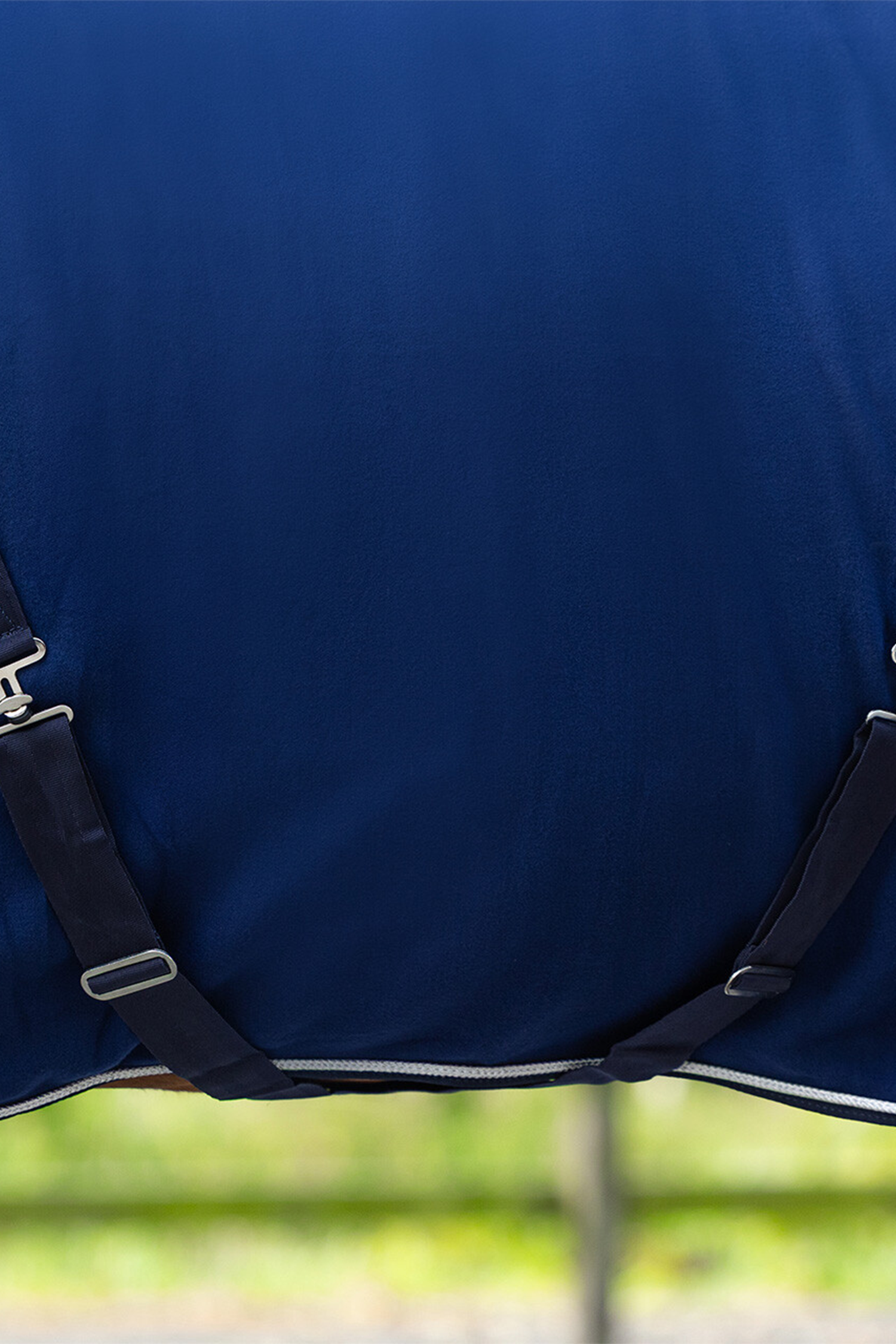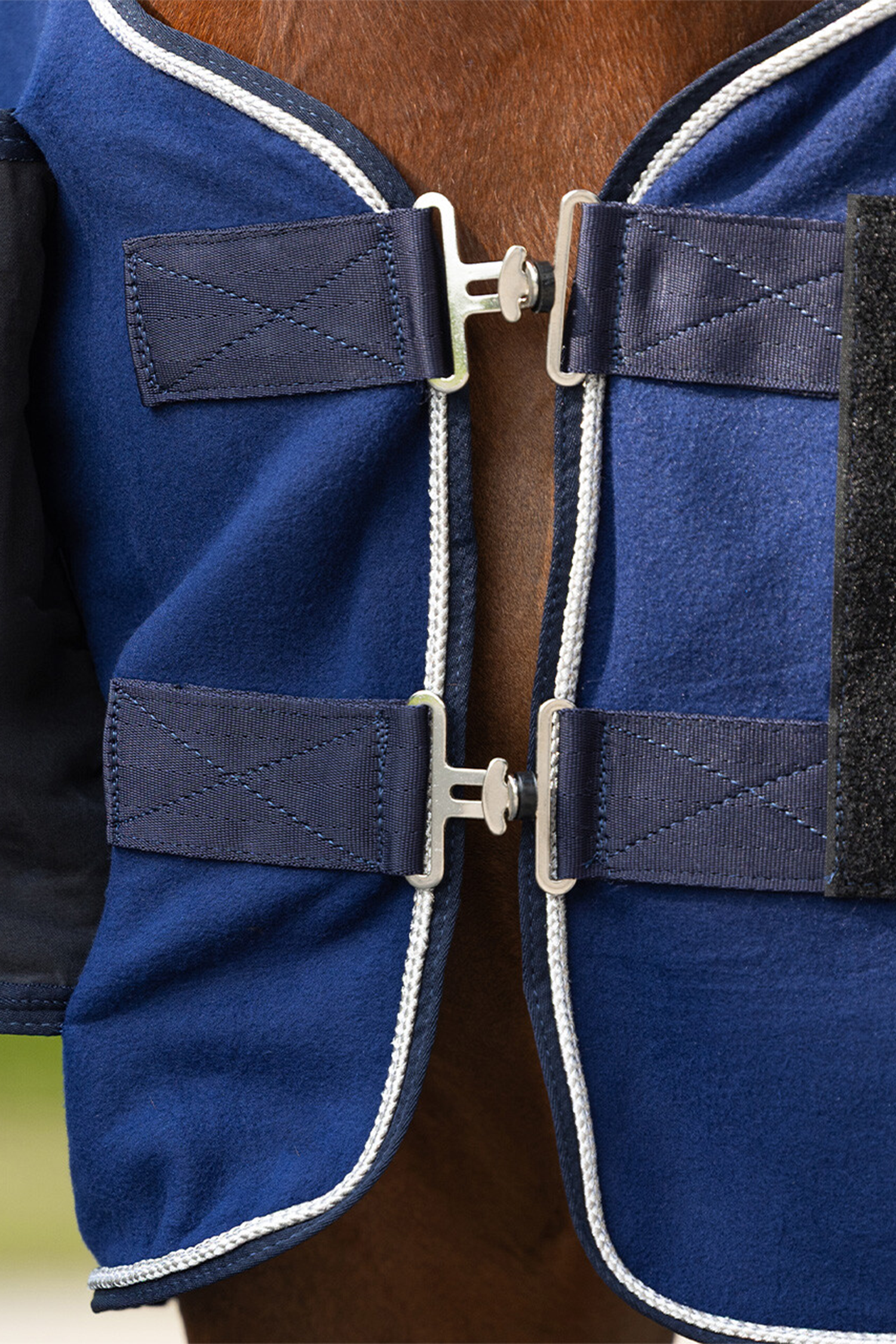 Tillverkat i mjukt och slitstarkt 240 g fleece som effektivt transporterar bort fukt och samtidigt känns behagligt mot hästens hud. De avtagbara kryssgjordarna gör täcket mångsidigt och enkelt att anpassa efter behov, medan de dubbla framknäppningarna täcks av en snygg bröstflik med kardborrestängning för en extra exklusiv finish.