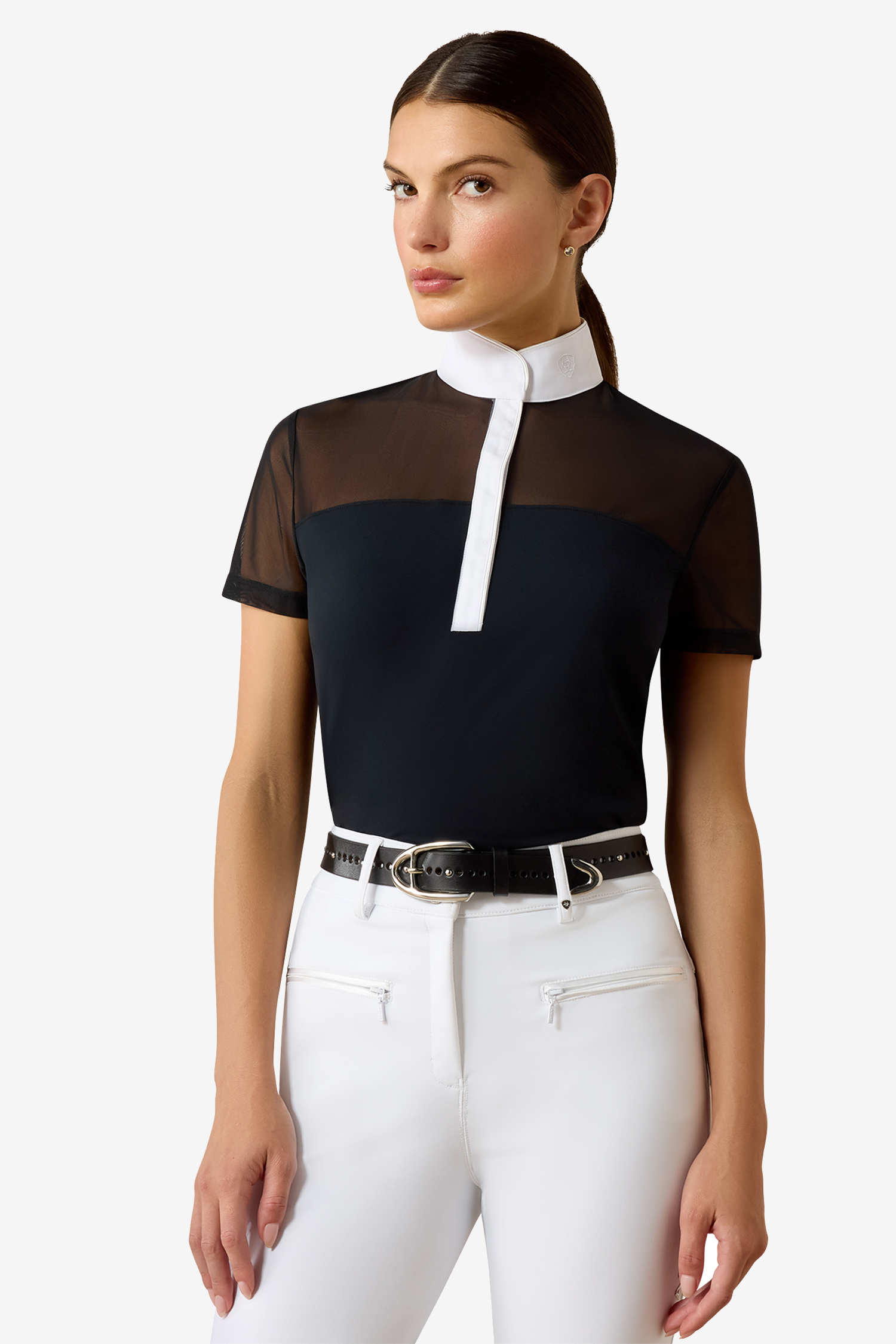Den kroppsnära passformen är anpassad för tävlingsryttare och ger ett smickrande intryck samtidigt som den erbjuder full rörelsefrihet i sadeln. Det tekniska materialet hjälper till att reglera kroppstemperaturen under intensiva moment och håller dig sval när det blir varmt. Den luktreglerande funktionen bidrar till en fräsch känsla under långa tävlingsdagar, medan den smutsavvisande ytan gör plagget lättare att hålla rent.