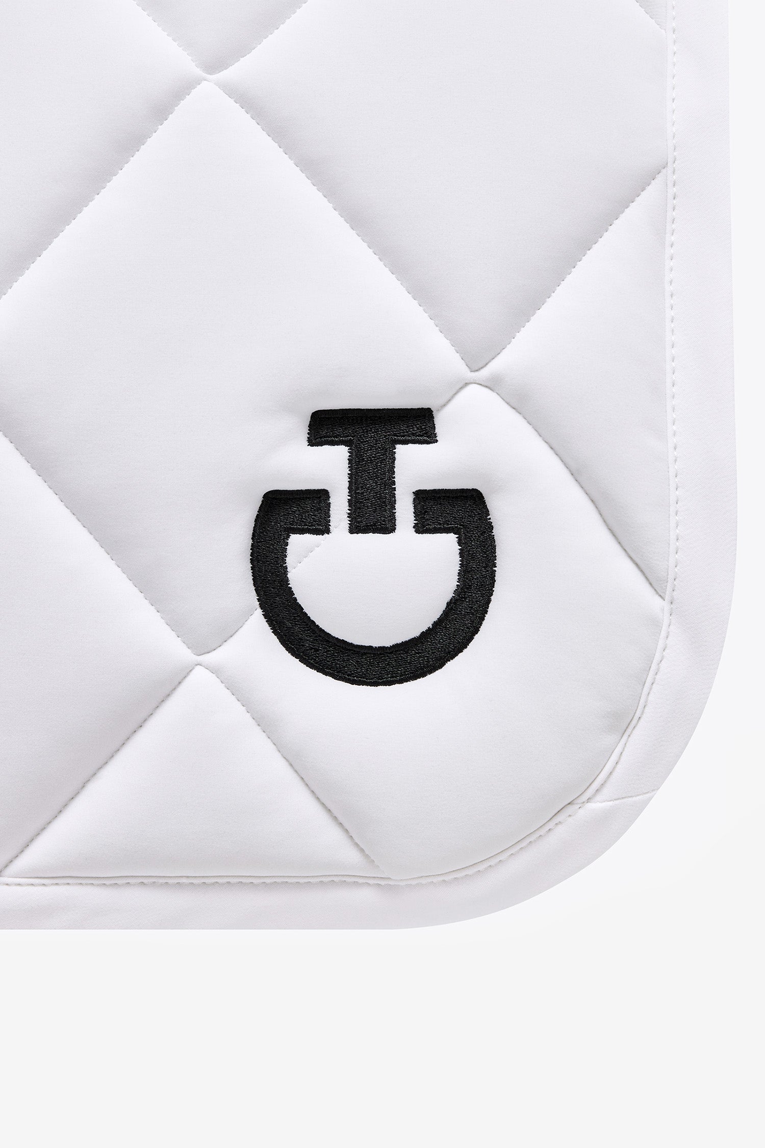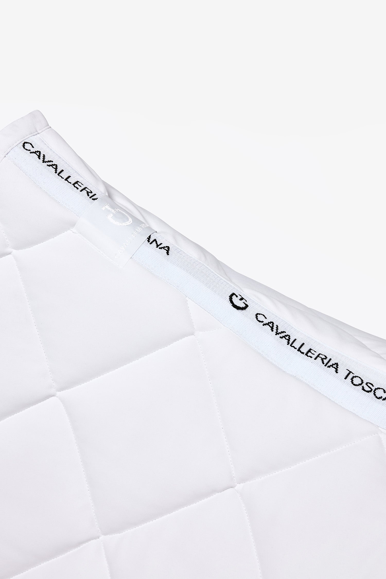 Cavalleria Toscana Diamond Quilt Jersey Dressyrschabrak är ett exklusivt dressyrschabrak som kombinerar elegant design med teknisk funktion. Den klassiska diamantquiltningen ger ett sofistikerat uttryck samtidigt som den säkerställer jämn stoppning och optimal tryckfördelning under sadeln.