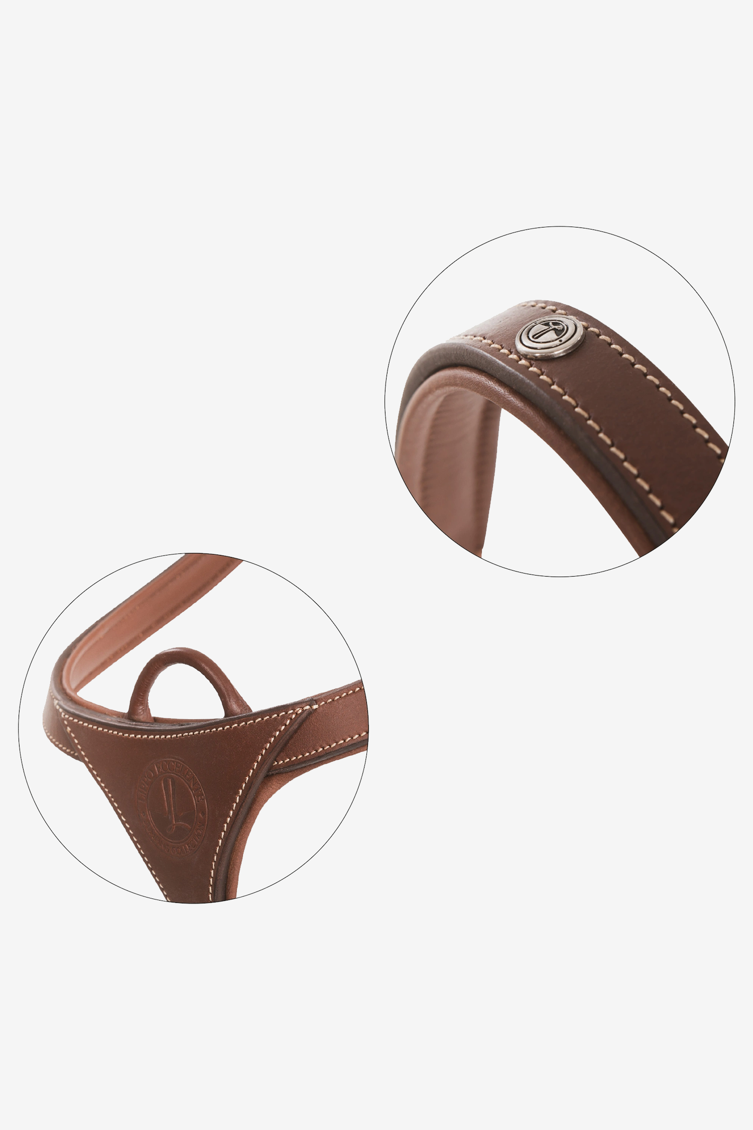 Utrustad med avtagbart snabbspänne för sadelgjorden och fäste för kort martingal. Silverfärgade, rostfria spännen, kontrastsömmar och den präglade Lippo Eccelente-loggan fulländar det exklusiva och välbalanserade uttrycket.