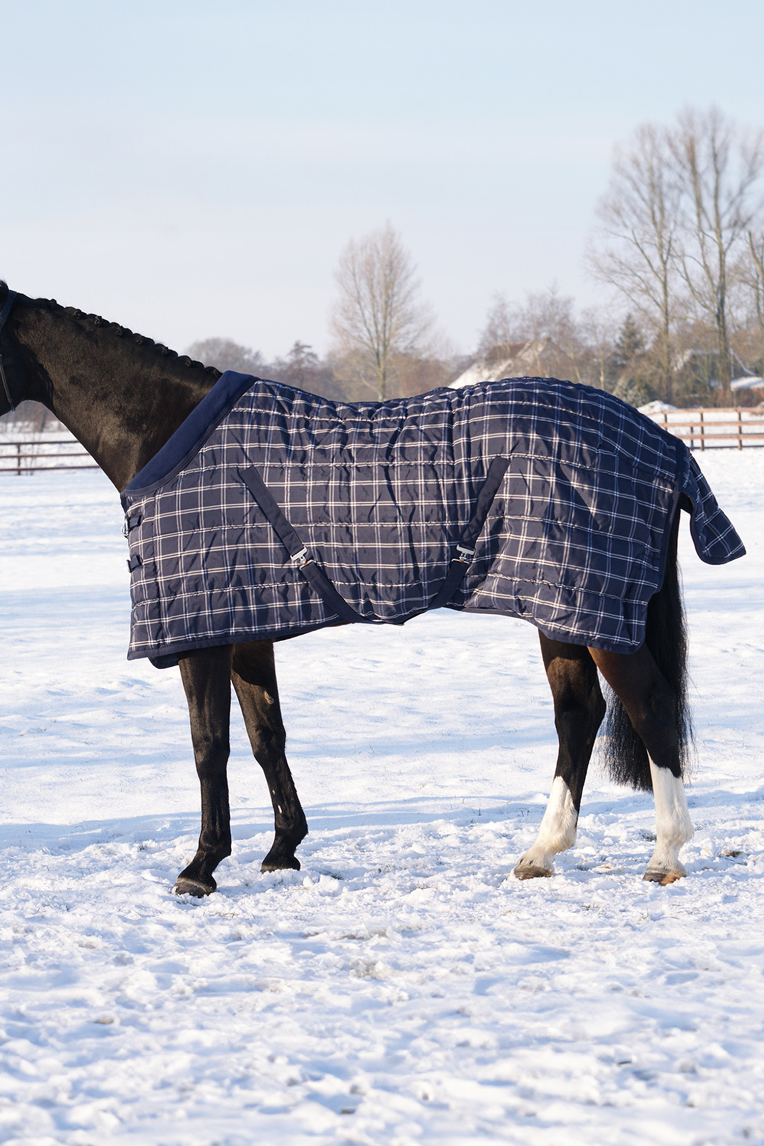 Ge din häst den ultimata komforten i stallet med vårt lyxiga stalltäcke med fleecekrage – designat för att hålla din häst varm, torr och bekväm även under de kallaste dagarna.