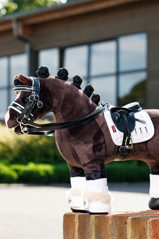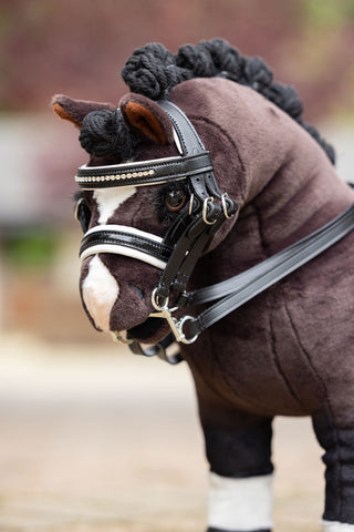 Varje Toy Pony är individuellt handgjord med kärlek och omsorg. Valegro är en stilig hingst med distinkta markeringar, inklusive tre vita strumpor. Han har en realistisk vit bläs och en vacker, flätbar svart man och svans, precis som den riktiga hästen.