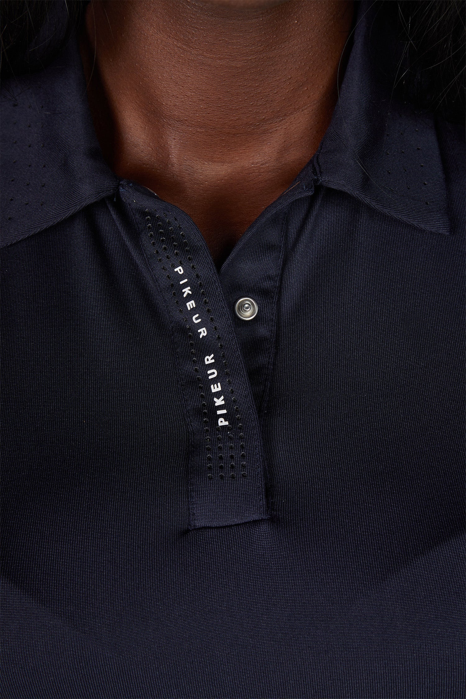 Laserskurna detaljer vid krage, ärmar och sidopaneler ger inte bara en modern look utan bidrar också till förbättrad ventilation och rörelsefrihet. Den klassiska polokragen kompletteras med dolda knappar som skapar en ren och elegant finish.