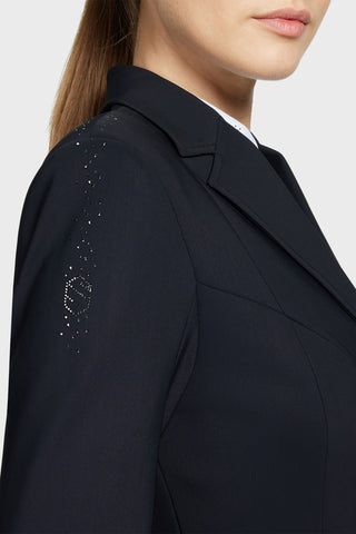 Aloise tävlingsskjorta från Samshield är en fin långärmad tävlingsskjorta med snygga glitter-detaljer av swarovskistenar. De långa ärmarna i meshtyg är perfekta för en varm tävlingsdag och tar lite plats under tävlingskavajen, vilket ger dig som ryttare större rörelsefrihet.