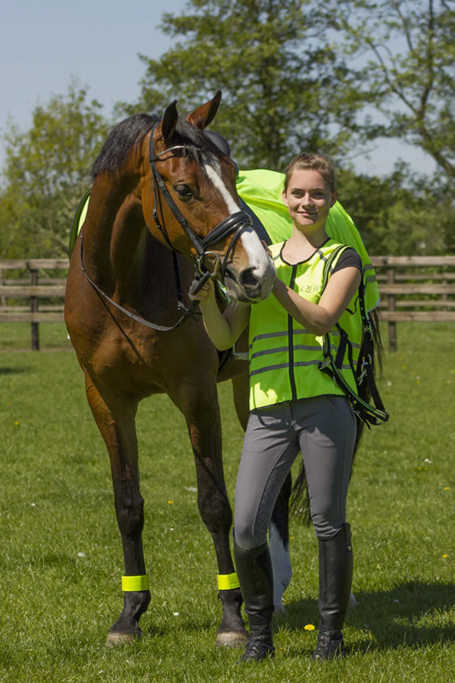 Ett lätt och funktionellt skrittäcke tillverkat i finmaskigt meshmaterial som ger optimal ventilation samtidigt som det skyddar hästen under ridning. Täcket är utrustat med flera reflekterande ränder på sidorna för ökad synlighet i mörker och dålig sikt – perfekt för uteritter under höst, vinter och tidiga morgnar.