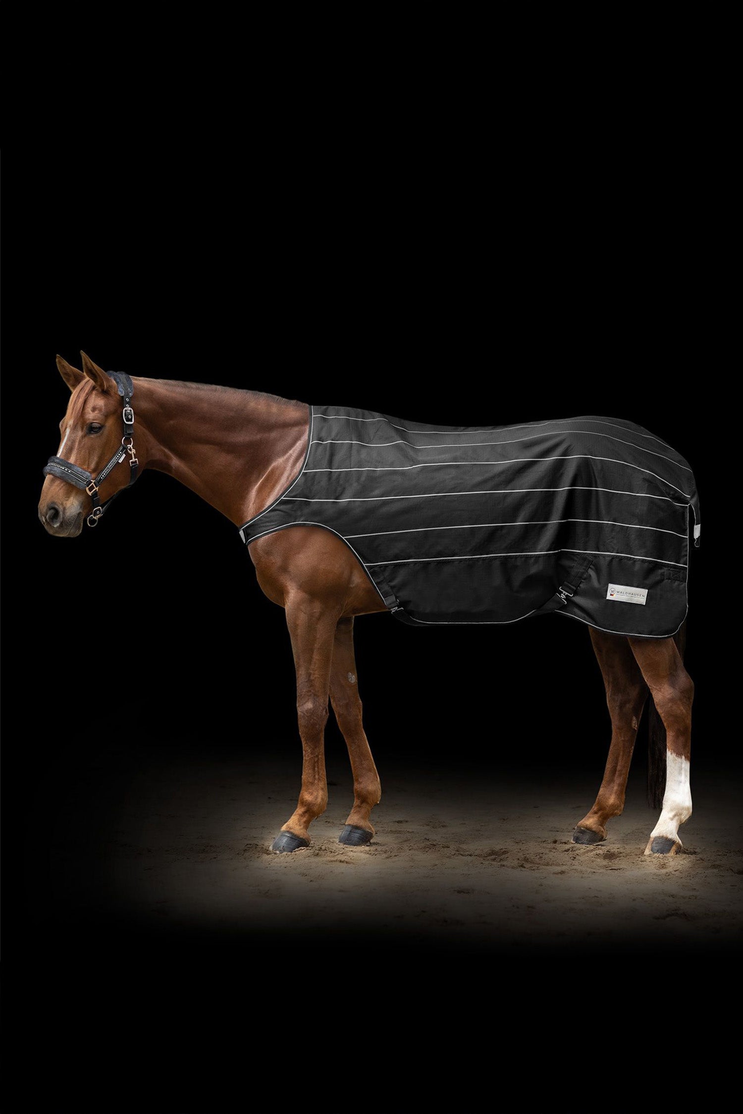 Insidan är fodrad med ett mjukt, svettabsorberande fleecefoder som hjälper hästen att torka snabbt och hålla sig varm utan att bli fuktig. De invävda reflexränderna längs hela täcket ger ökad synlighet och trygghet i mörker.