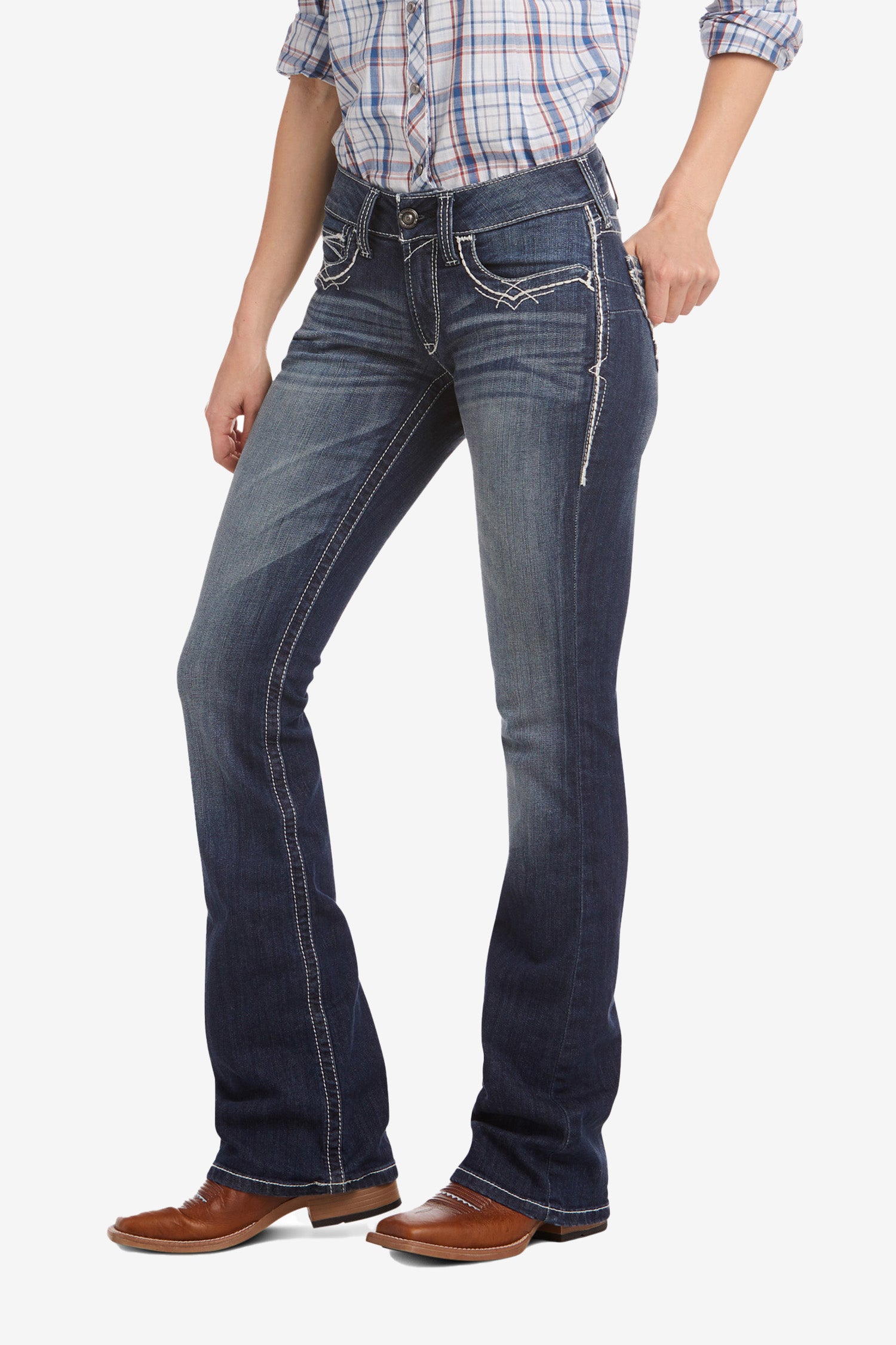 Ariat WMS R.E.A.L. Mid Rise Stretch Entwined Boot Cut Jean är en bekväm och funktionell jeansmodell framtagen för kvinnor med en aktiv livsstil, både i och utanför stallet. Passformen är mid rise (mellanhög) och ger ett stabilt och bekvämt stöd, medan boot cut-skärningen gör att jeansen faller snyggt över ridstövlar eller boots.