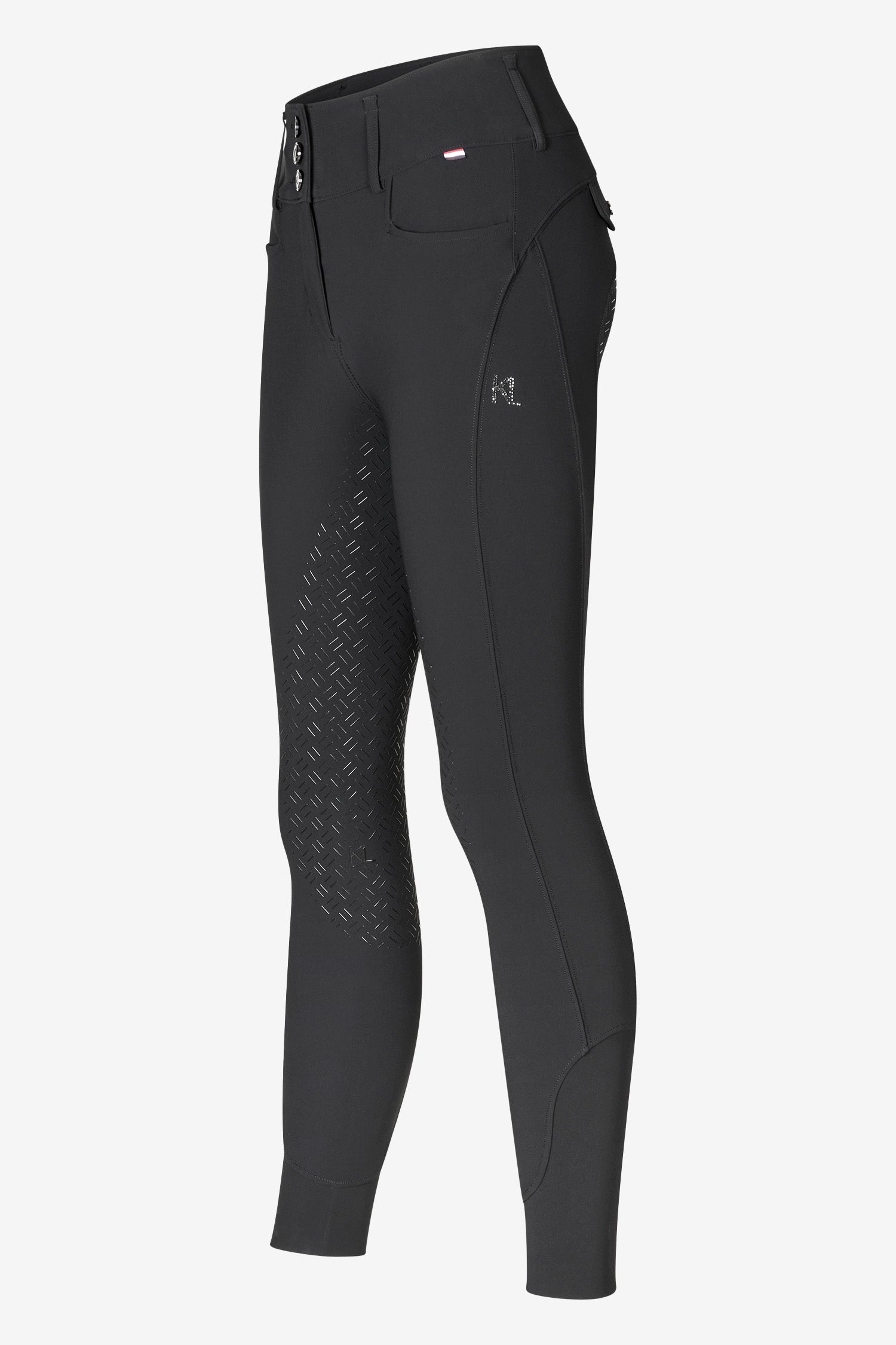 En elegant KL-logotyp pryder vänster ben och är utsmyckad med kristaller från Swarovski® för en touch av glittrande elegans.