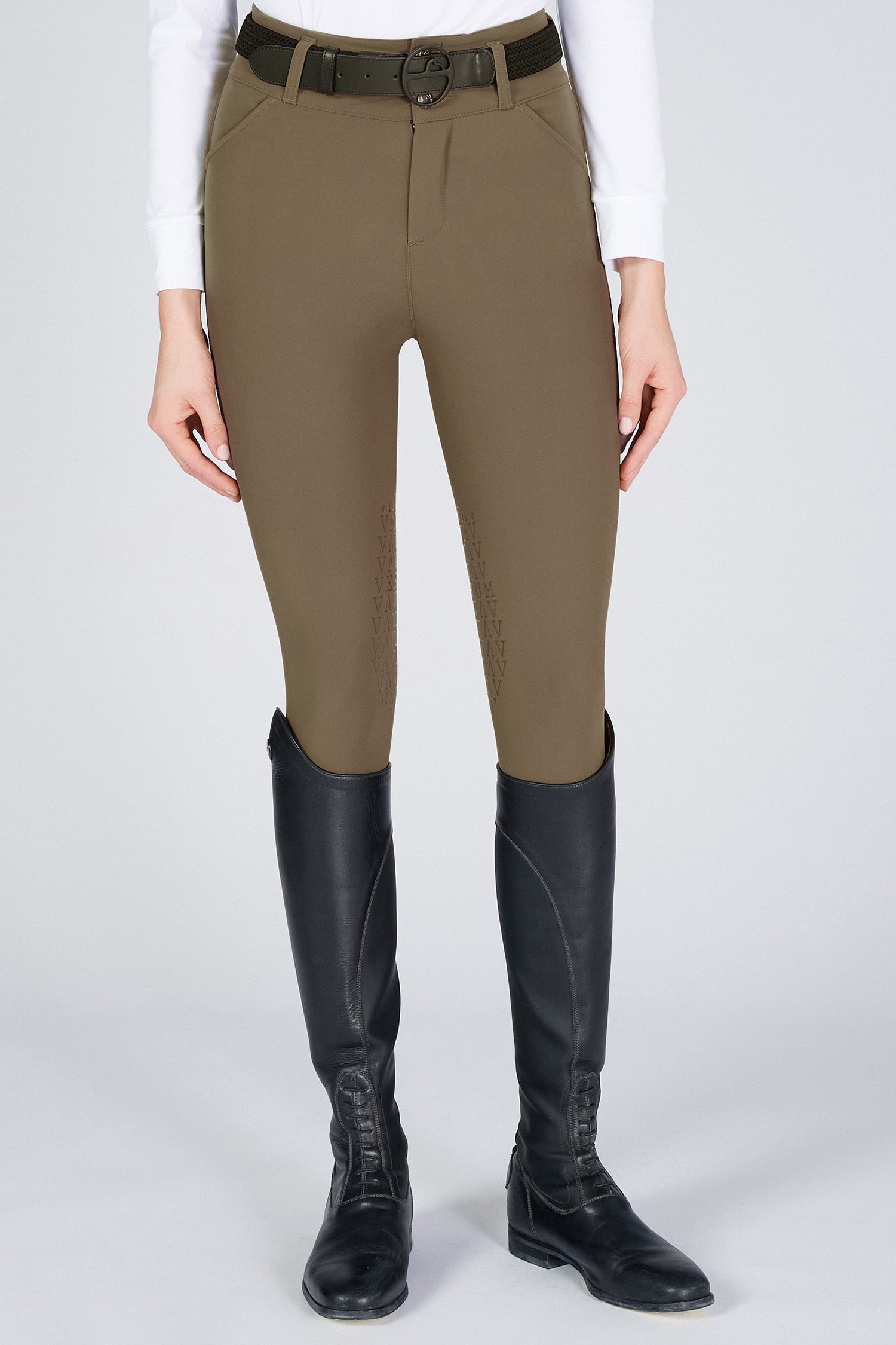 Stretchiga och följsamma utan att ge vika på stödet. Tre knappar i midjan ger dig en bra stabilitet och sluter om bra i svanken. Logga på sidan av vänstra låret. Skodda med silikon på insidan av låret. Elastiskt benavslut.