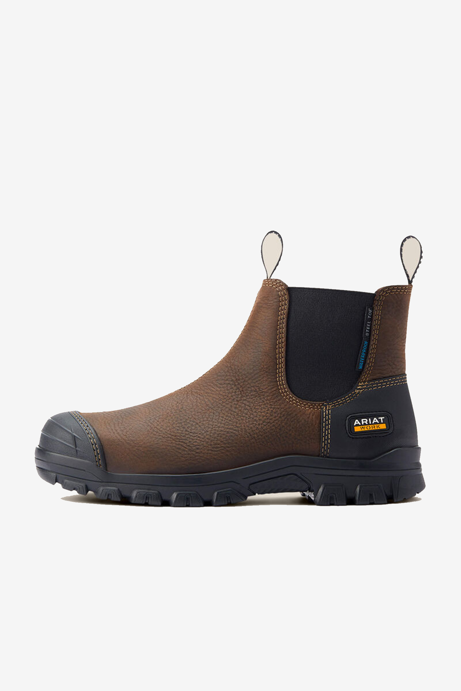 Ariat Treadfast Chelsea Waterproof Steel Toe Work Boot Brun är en robust och pålitlig arbetskänga för dig som ställer höga krav på säkerhet, komfort och hållbarhet. Denna chelsea-modell är framtagen för tuffa arbetsdagar inom lantbruk, stall, bygg, verkstad och andra miljöer där både skydd och rörelsefrihet är avgörande.
