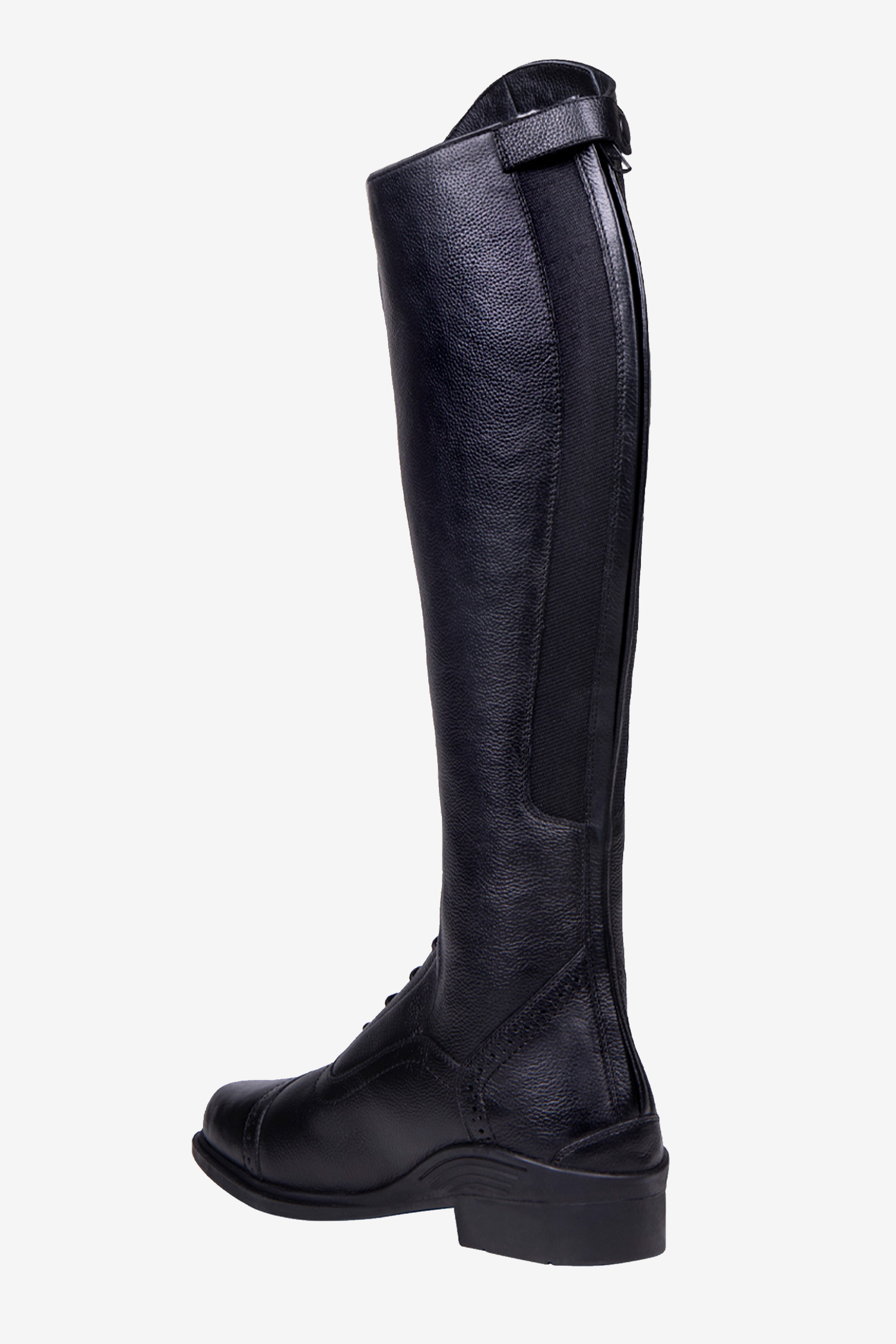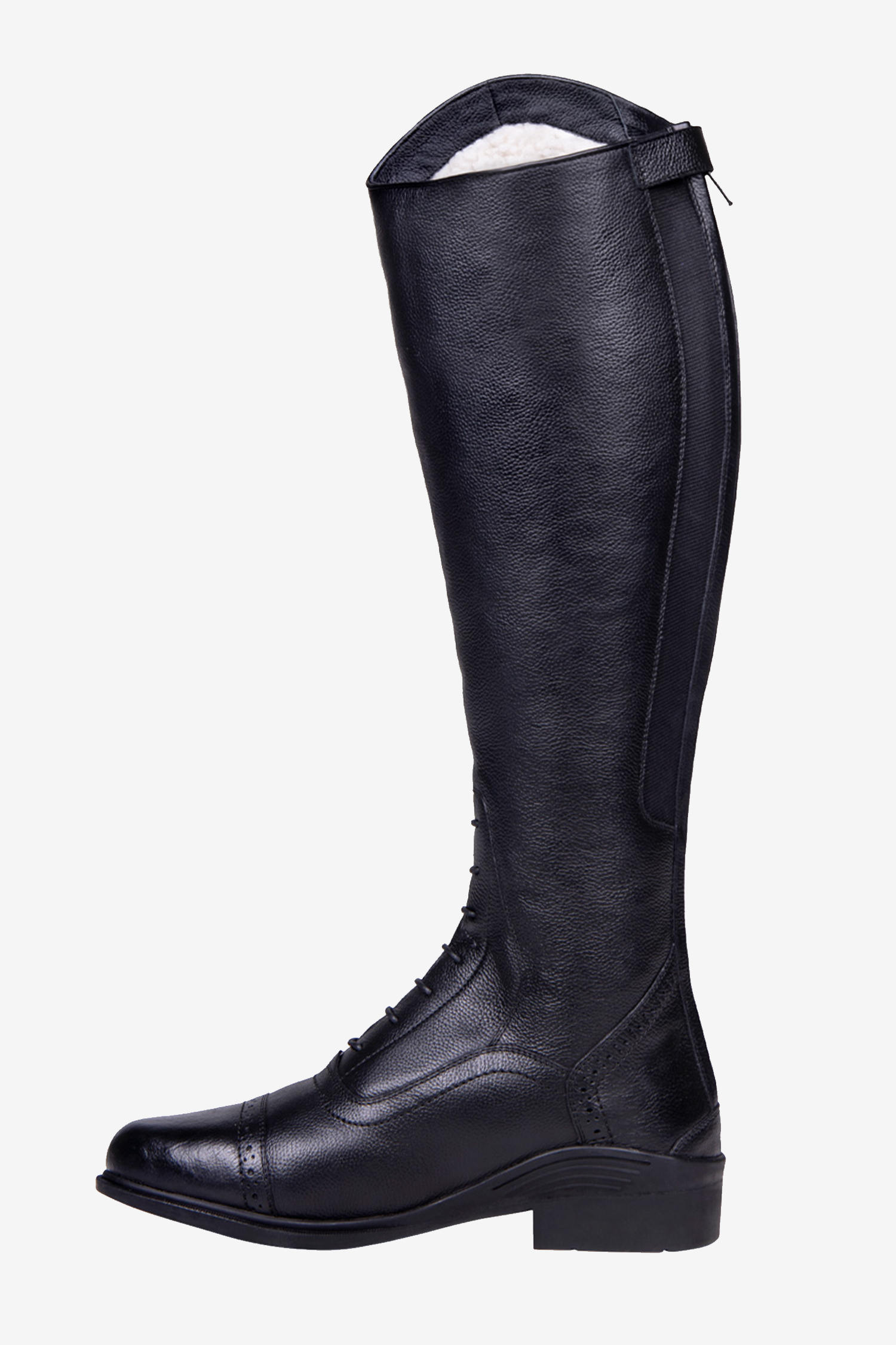 Möt vintern i stil med denna klassiska ridstövel i slitstarkt läder, designad för att ge både värme, komfort och ett elegant uttryck i sadeln. Den mjuka och varma fodringen håller fötterna behagligt varma, medan den resårinfällda dragkedjan baktill ger en följsam passform som formar sig efter benet.